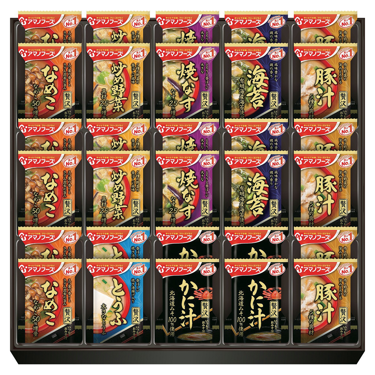 ●内容:いつものおみそ汁贅沢(なめこ・豚汁 各6)、いつものおみそ汁贅沢(炒め野菜・焼なす・海苔・かに汁 各4)、いつものみそ汁贅沢とうふ×2 計30