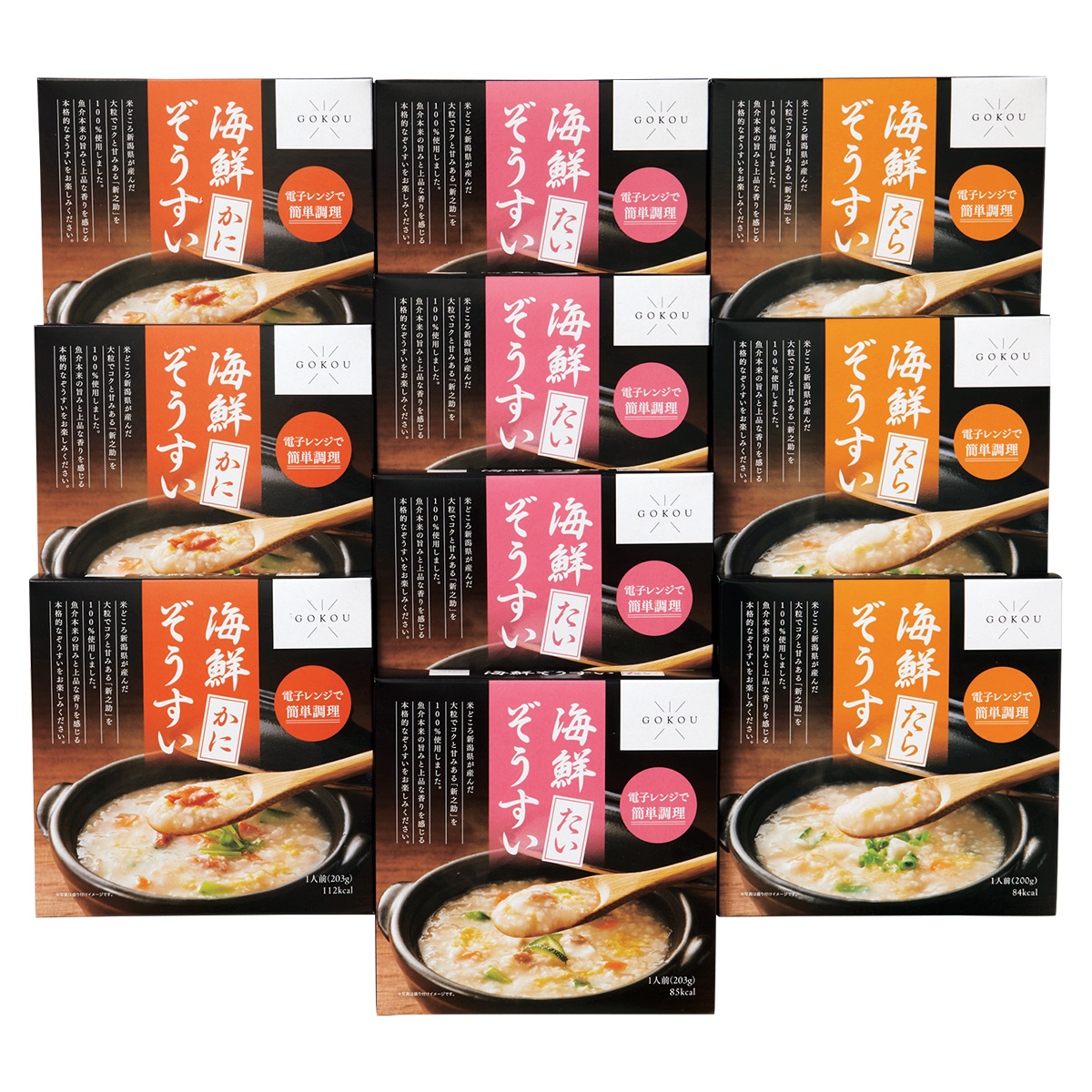 ●内容:かにぞうすい・たらぞうすい 各203g×3、たいぞうすい203g×4