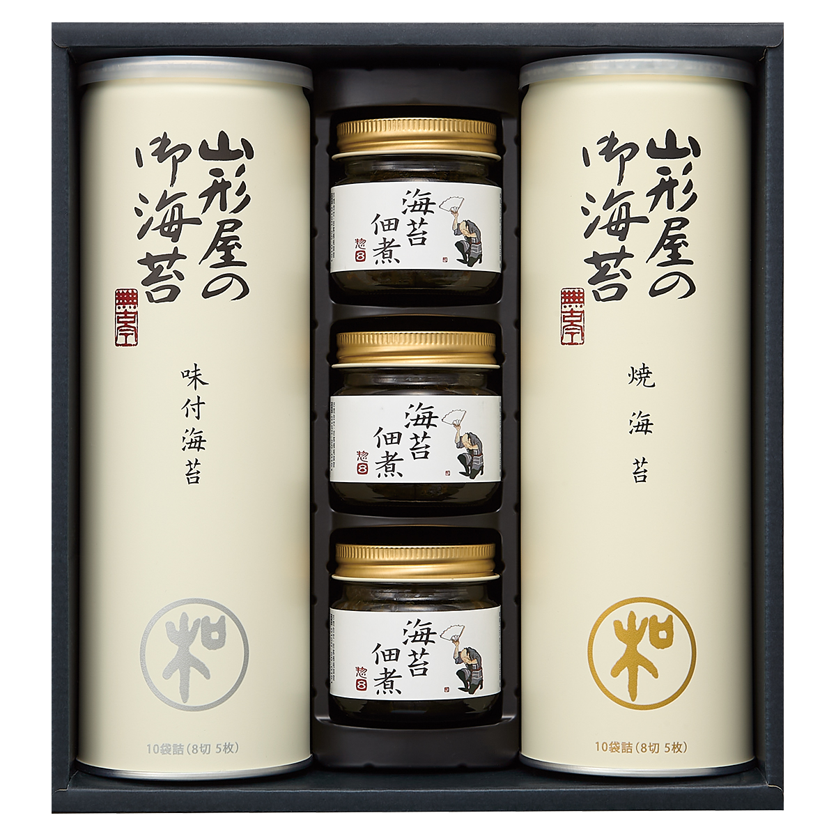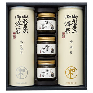 ●内容:焼海苔・味付海苔 各10袋詰(8切5枚)、海苔佃煮60g×3