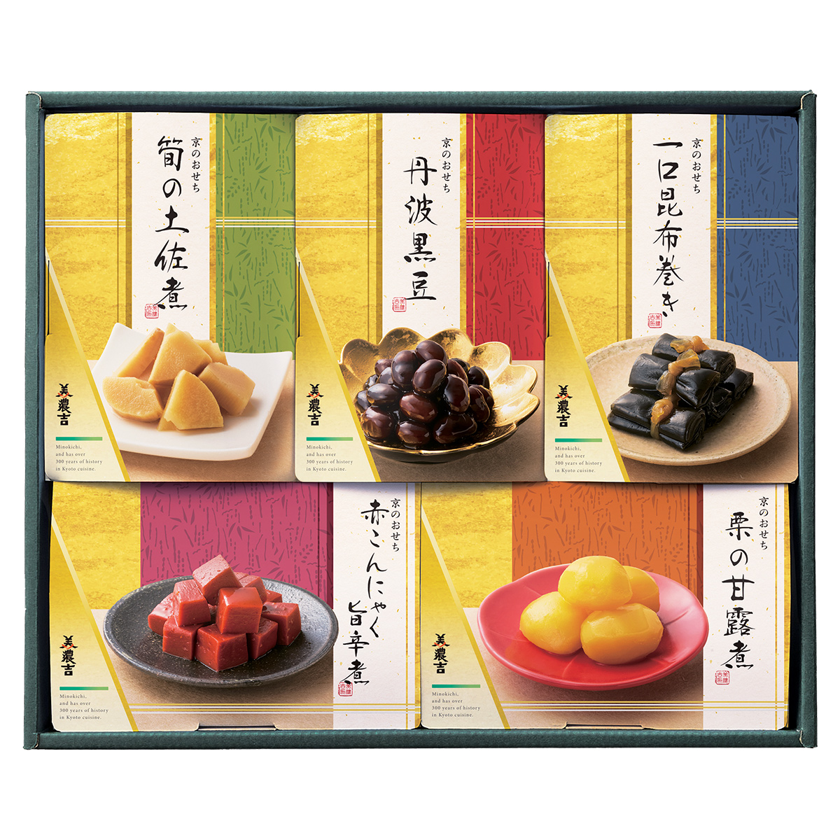 ●内容:丹波黒豆・栗の甘露煮・一口昆布巻き・赤こんにゃく旨煮 各60g、筍の土佐煮40g●商品に含まれるアレルギー特定原材料8品目:小麦>>東急百貨店のお歳暮・ウィンターギフト 惣菜・調理品ほか 商品一覧>>東急百貨店のお歳暮・ウィンターギフト 京料理 美濃吉 商品一覧>>東急百貨店のお歳暮・ウィンターギフト2025ページ◎こちらの商品はクリスマス包装が可能です。クリスマス包装をご希望の場合は、ご注文の際にご用向き一覧から「クリスマス包装(12/22お届け)」「クリスマス包装(12/23お届け)」「クリスマス包装(12/24お届け)」のいずれかをお選びください。(クリスマス包装の承りは12月12日(金)12時までとさせていただきます。)※画像はイメージです。