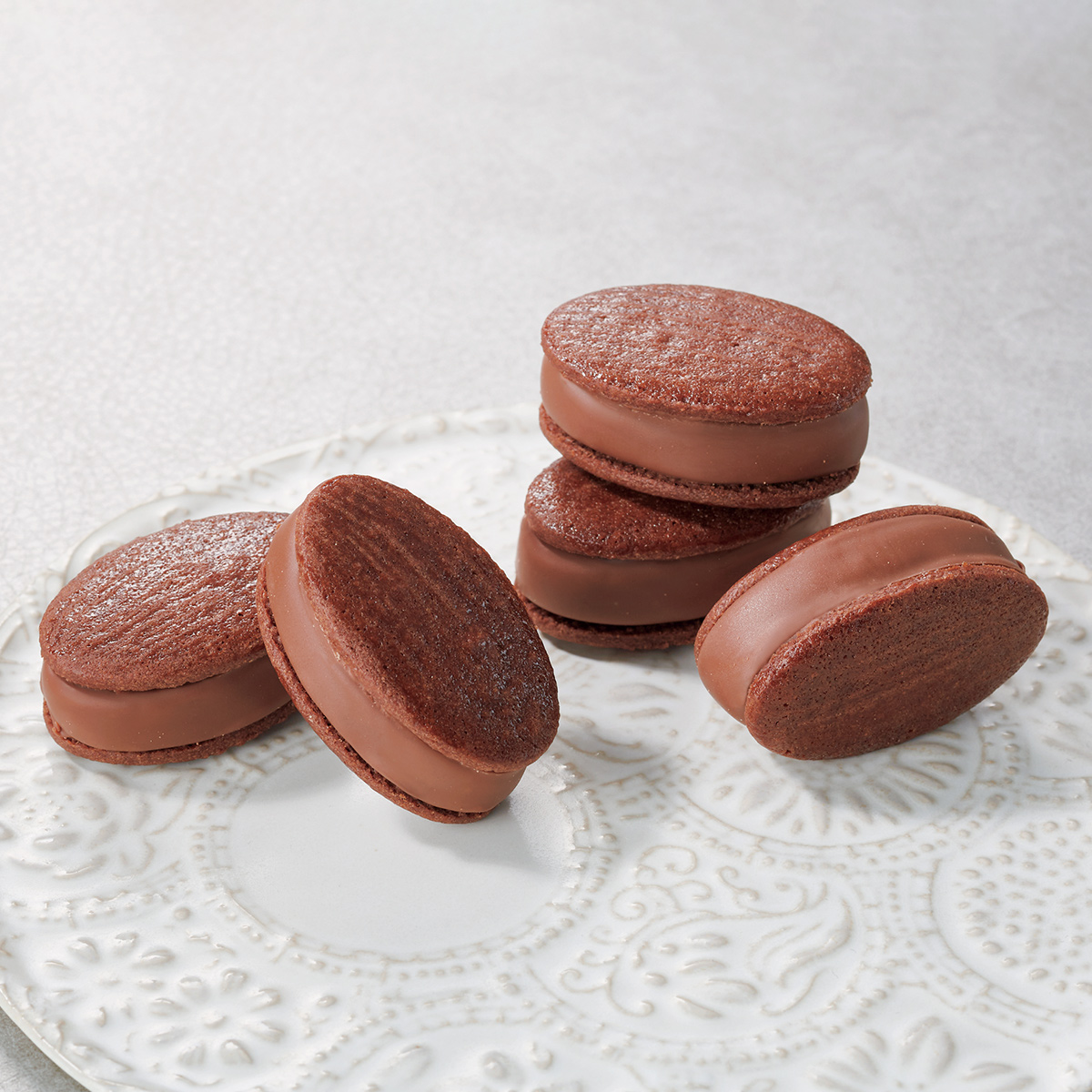 サクサクのショコラサブレにチョコレート、中にはなめらかガナッシュ。一粒においしさを詰めた、まるでボンボンショコラのようなサンドです。