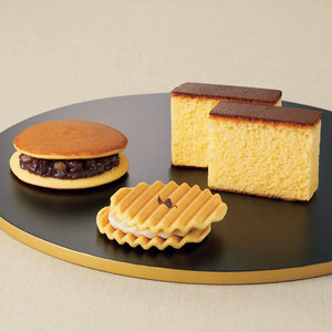 独自配合の小麦粉と新鮮な卵の黄金比で焼き上げたカステラや、クリームをサンドした洋風煎餅、栗入りのどらやき。京都室町の御菓子司が贈る多彩なおいしさ揃いです。