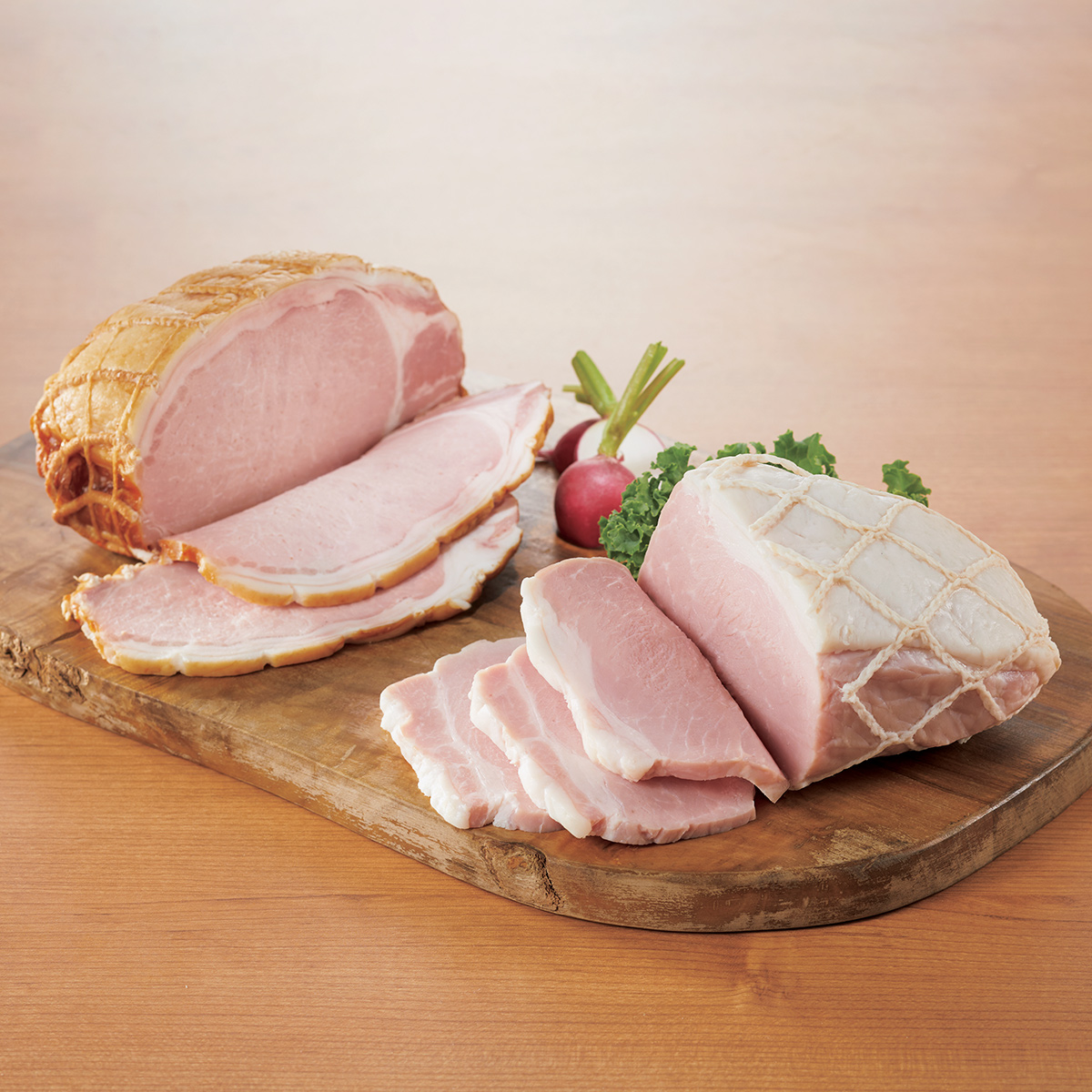 柔らかい肉質と、淡い桃色が特徴の秋田県産桃豚を風味豊かなハムに仕上げました。