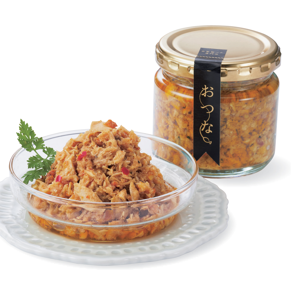 「たいせツナ、おツナがり」の思いを込めた手づくりの乙なツナのオイル漬。静岡県内で水揚げされた中からビンチョウマグロを厳選。丁寧に火入れしてほぐし、駿河湾の海洋深層水をベースにしたスープと、独自にブレンドしたオイルで作る新感覚のツナです。