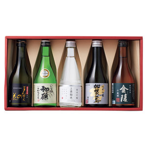 ●内容:まんさくの花 特別純米・初孫 いなほ 純米吟醸・上善如水 純米吟醸・加賀鳶 純米吟醸・金陵 千歳緑 特別純米 各300ml