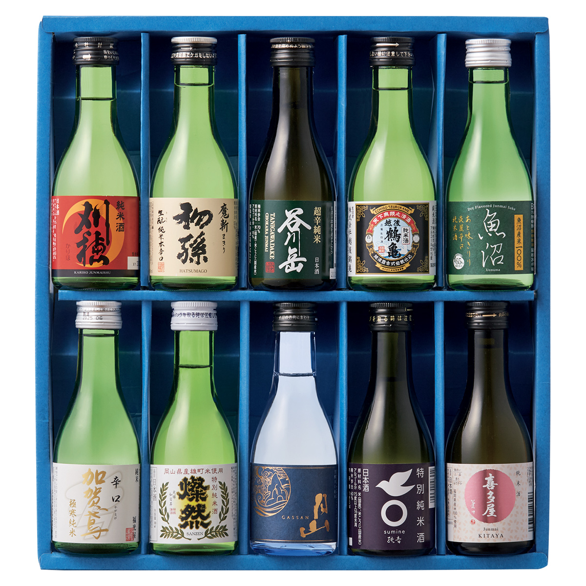 ●内容:刈穂(秋田)、初孫(山形)、谷川岳(群馬)、越後鶴亀(新潟)、魚沼(新潟)、加賀鳶(石川)、燦然(岡山)、月山(島根)、雪雀(愛媛)、喜多屋(福岡) 各180ml