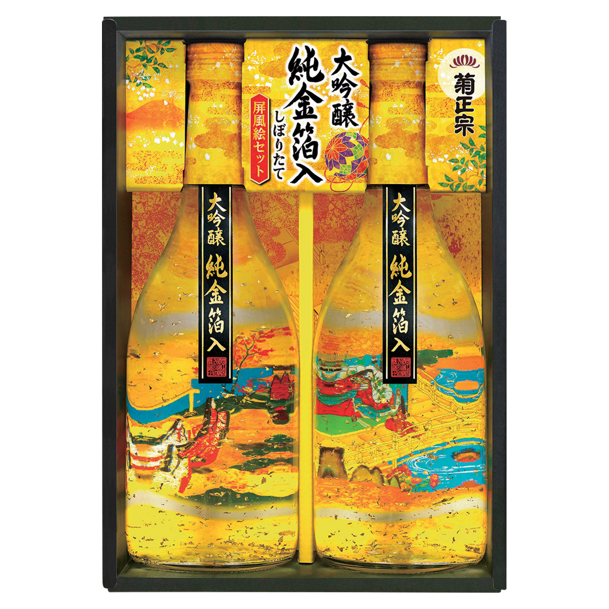 お歳暮[兵庫]菊正宗 しぼりたて大吟醸 純金箔入屏風絵セット(SWD30)