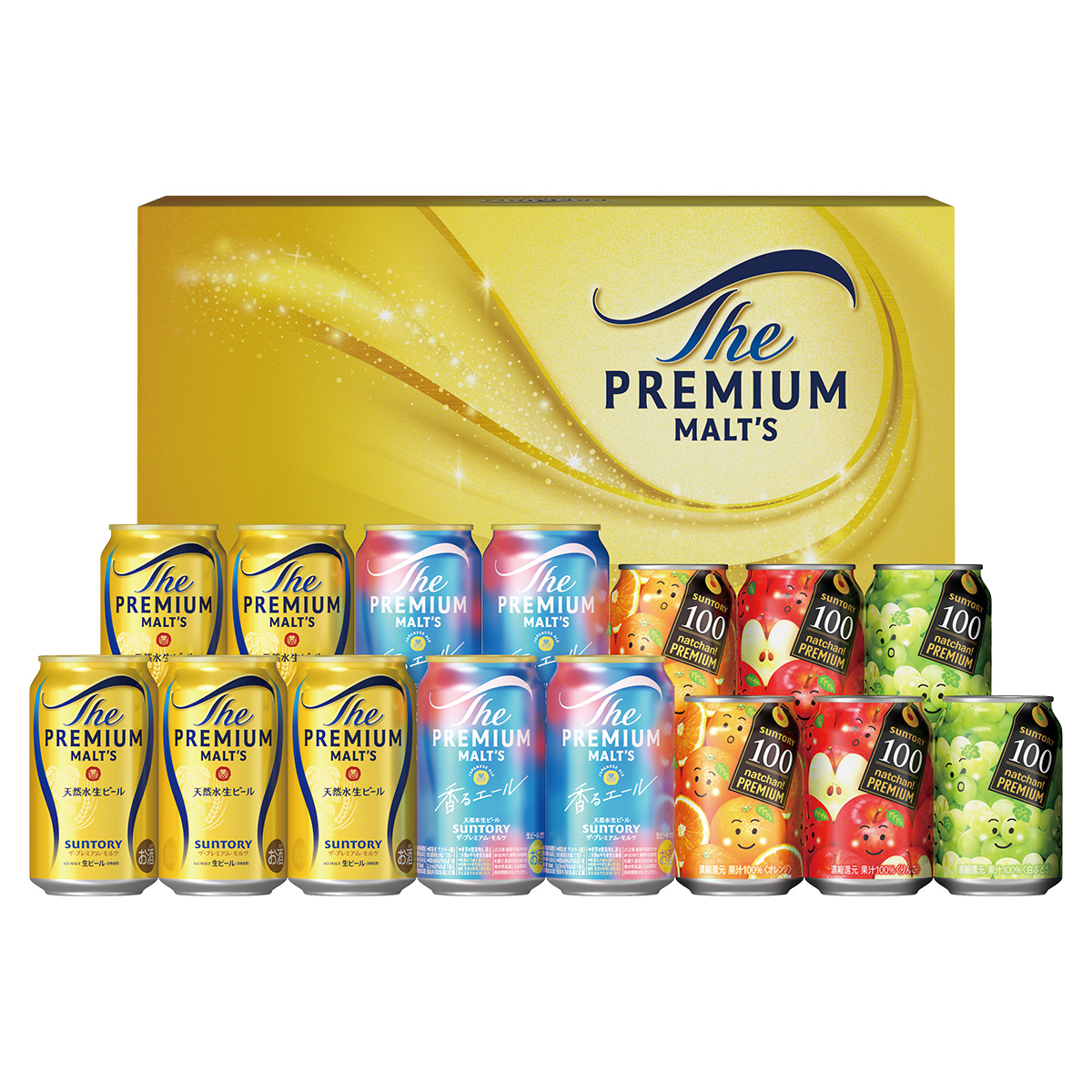 ●内容:ザ プレミアム モルツ350ml×5、香るエール350ml×4/なっちゃん100:オレンジ・りんご・白ぶどう 各290ml×2
