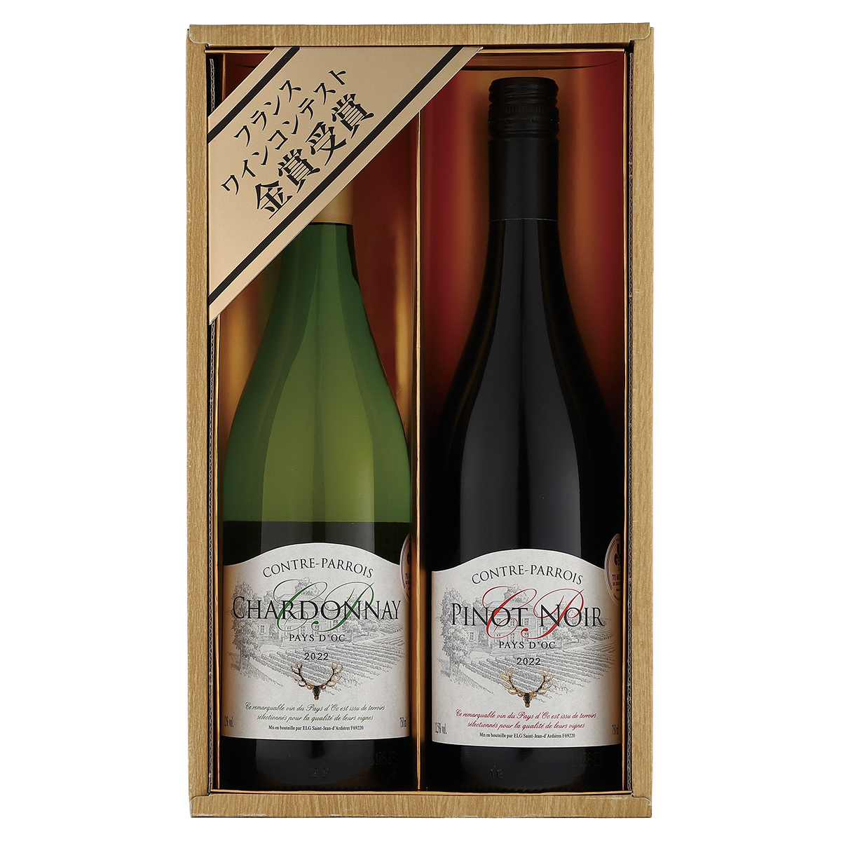 ●内容:コントルパロワ ピノ ノワール(赤・ミディアム)・コントルパロワ シャルドネ(白・辛口) 各750ml(70ミリオンデギュスタトゥール金賞)