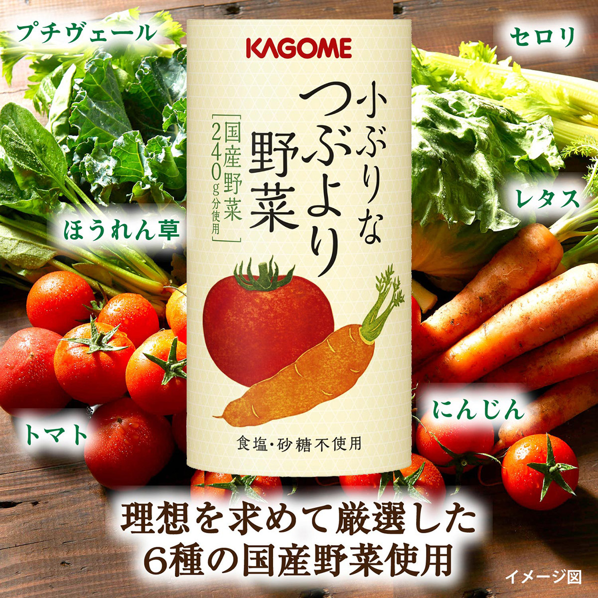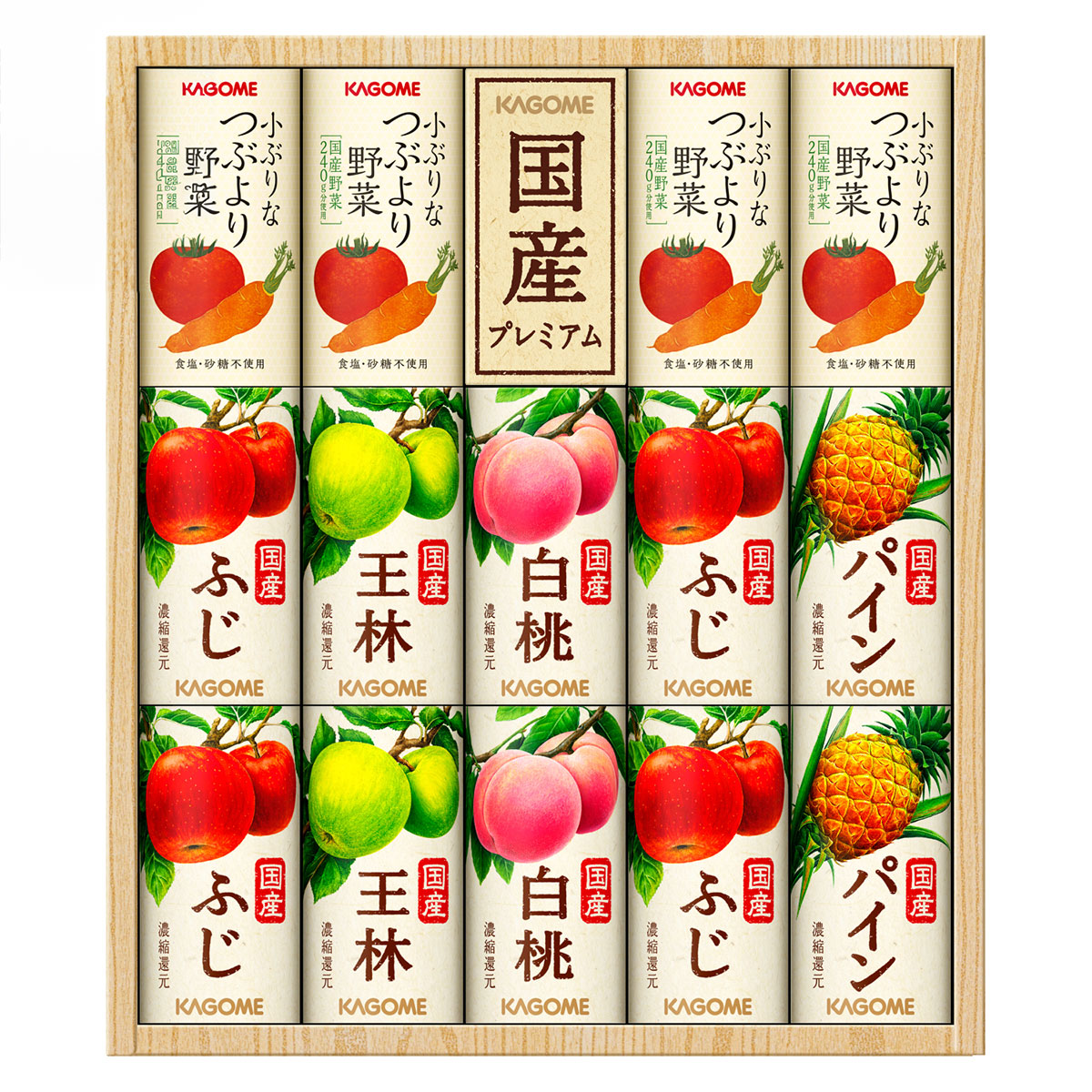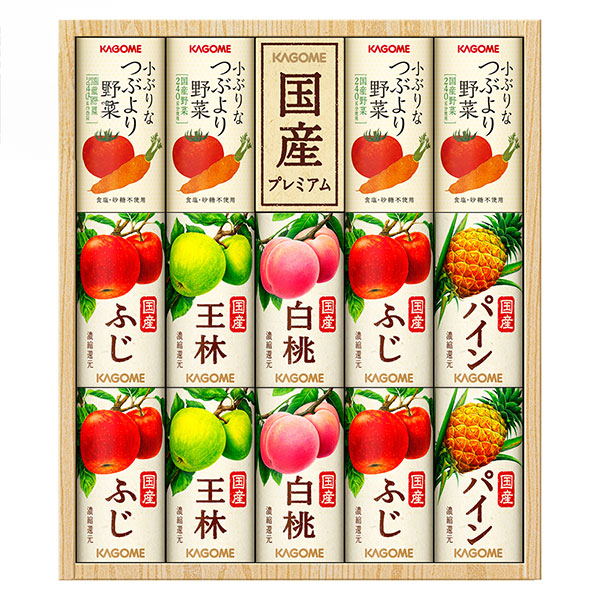 小ぶりなつぶより野菜+国産フルーツジュースセットはネットショッピング限定の特別なギフトセットです。小ぶりなつぶより野菜は、まるで野菜を食べているような新食感の野菜ジュースです。カゴメが理想を求めて厳選した6種の国産野菜を使用しています。原料の野菜は、おいしさを最大限に引き出すために、野菜ごとに異なる方法で搾汁されます。例えば、にんじんはやさしく搾り、えぐみを持ち込まない、フレッシュスクイーズ製法というカゴメ独自の技術で搾汁したものを中心に使用しています。トマトは、独特な香りを醸し出す加工方法と旨みを感じる加工方法の2種類を組み合わせることで、カゴメにしか出せない香りと味を生み出しました。葉野菜も破砕方法や搾り方の強さなどをそれぞれ調整しています。お子様からお年寄りまで家族みんなで楽しめるギフトセットです。