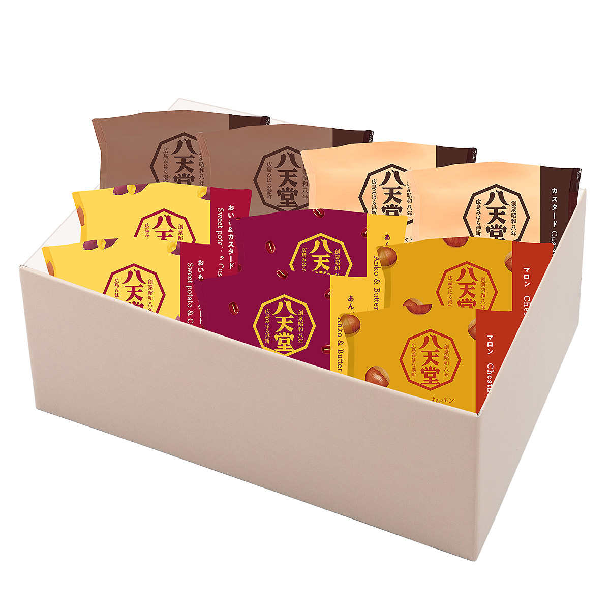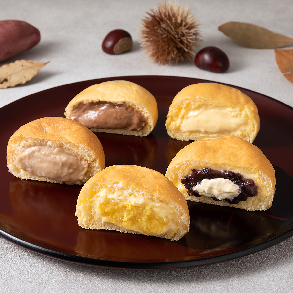 ◎ネット限定品定番人気のくりーむパンに加えて、この季節限定の『マロン』『あんバター』を詰合せました。今年は新フレーバーの『おいも&カスタード』が登場。