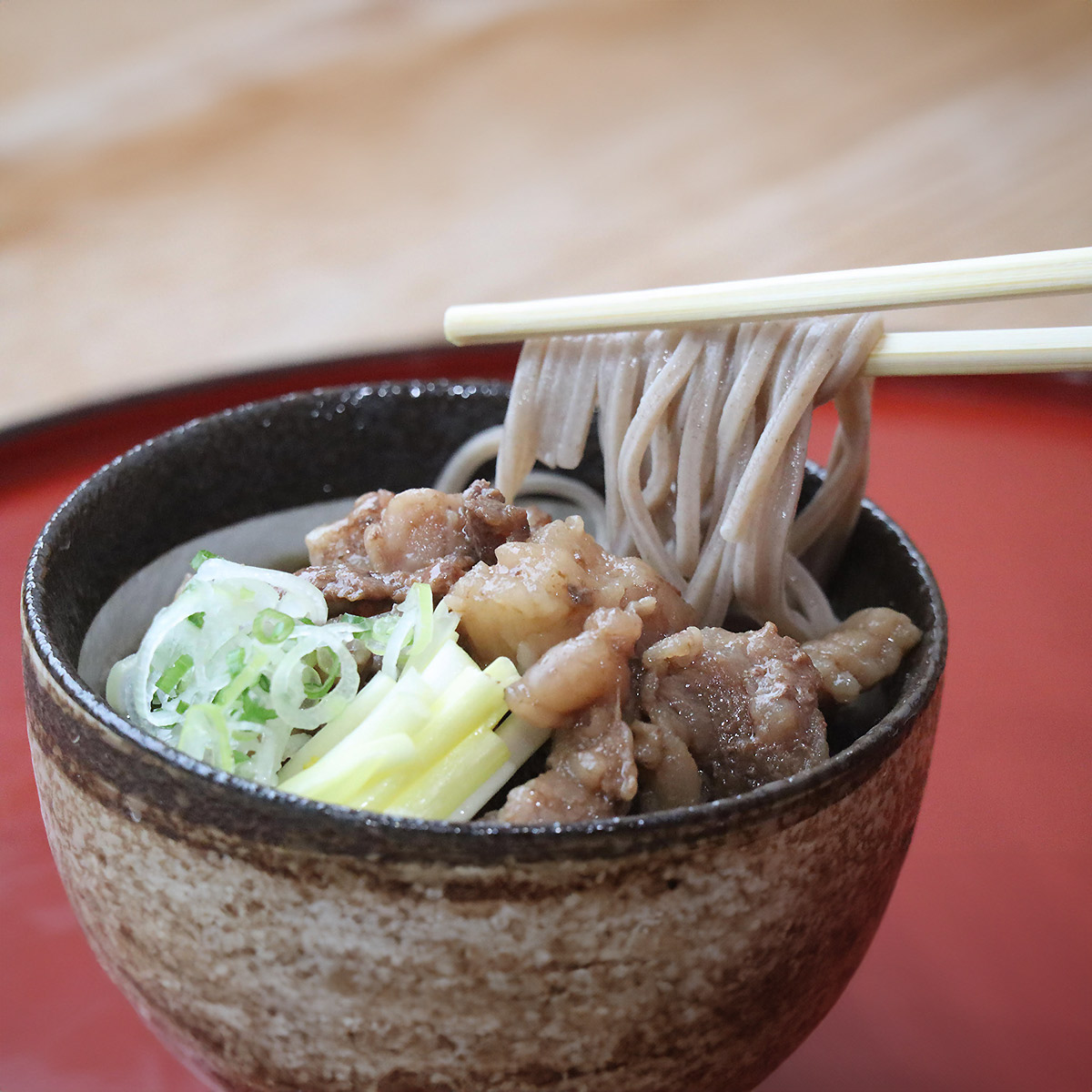 ◎ネット限定品期間限定の商品。「和牛そずり肉×十割蕎麦」地域の味を未来へ。江戸時代から養生食いの食文化のあるつやま。文化庁認定の100年フードにも認定されている牛肉文化で、つやま名物「そずり肉」。牛1頭からごくわずかしか採れない希少部位のそずり肉の濃厚な旨味とほどよい脂がを勝英地域特産の黒大豆「黒々茶」、岡山特産の「黄ニラ」の特製だしつゆに当店自慢の十割蕎麦で食べるそば屋のスペシャリテな和蕎麦です。