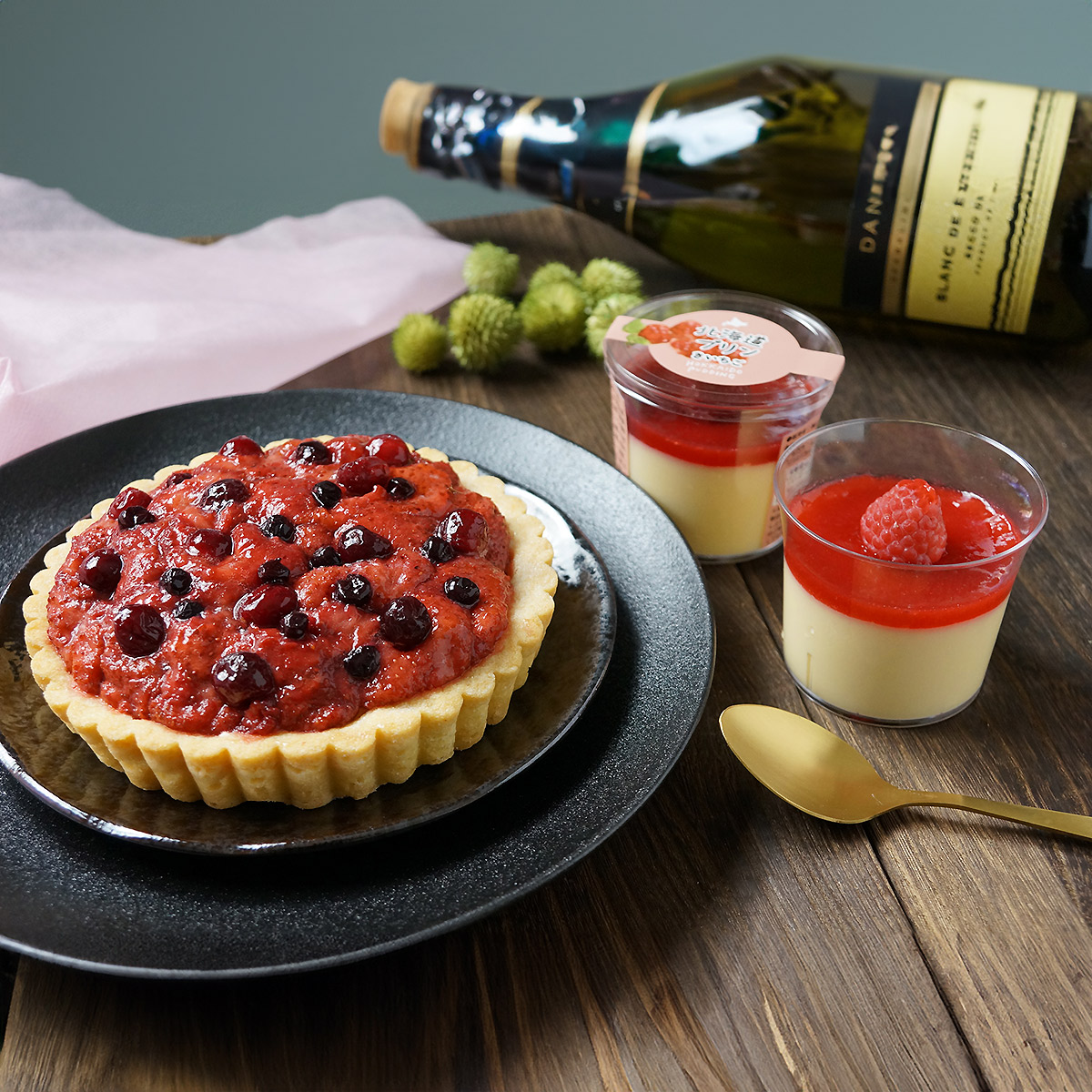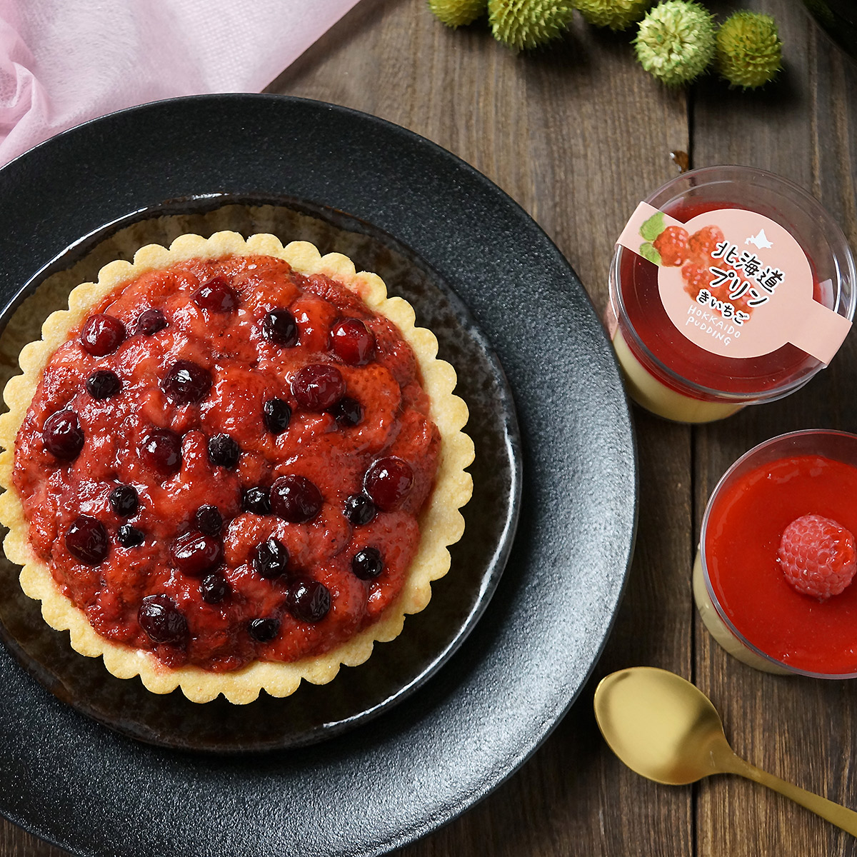◎ネット限定品人気のベリーを使ったタルトとプリンの詰合せです。ミックスベリータルトはストロベリー・クランベリー・ブルーベリーを使用し、ホールタイプのタルトにしました。木苺プリンはとろける食感のプリンに木苺とソースをあしらいました。