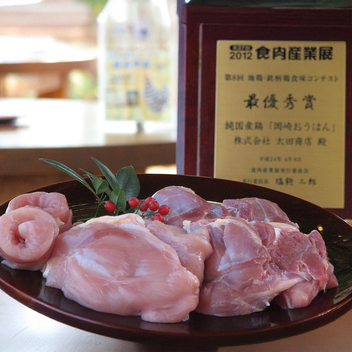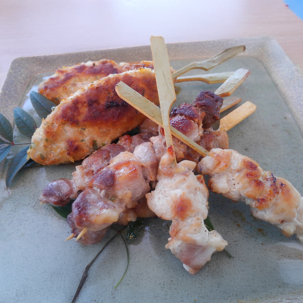 愛知県岡崎産の地鶏「岡崎おうはん」を、おうちで手軽に食べやすい焼き鳥串に仕立てました。串状に加工済みのため、解凍後さっと焼くだけ。食卓のグリルプレートを囲みながら、またBBQの主役として、いろいろなシーンでお楽しみいただけます。素材の美味しさをシンプルに味わうなら塩味で、またお好みの味付けをしてご賞味ください。もも、むね、鶏皮、ささみ、つくねの5種類を食べ比べできます。肉質は生臭さや脂身が少なく、しっかりとした歯ごたえがあとを引きます。低カロリーで高たんぱくのため、カロリーの気になる方など、健康志向の食生活にもおすすめ。
