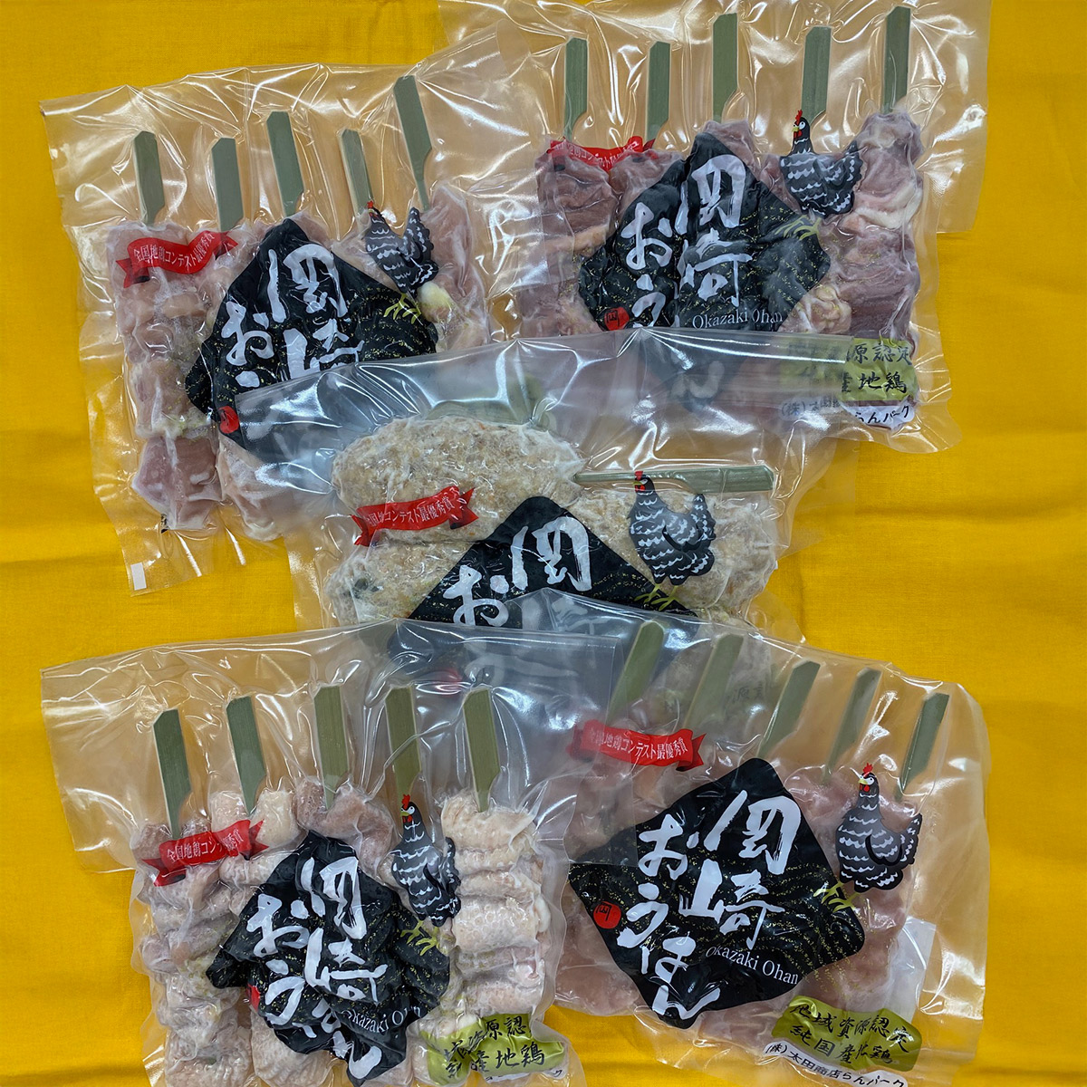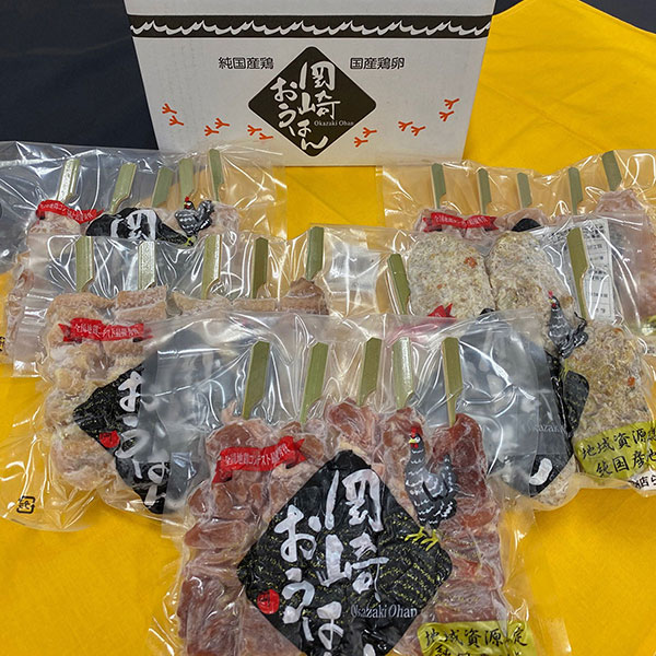 ●内容:内容:岡崎おうはんもも串5本入り×1袋、岡崎おうはんむね串5本入り×1袋、岡崎おうはんつくね串5本入り×1袋、岡崎おうはんささみ串5本入り×1袋、岡崎おうはん皮串5本入り×1袋