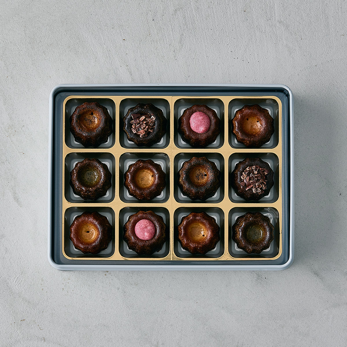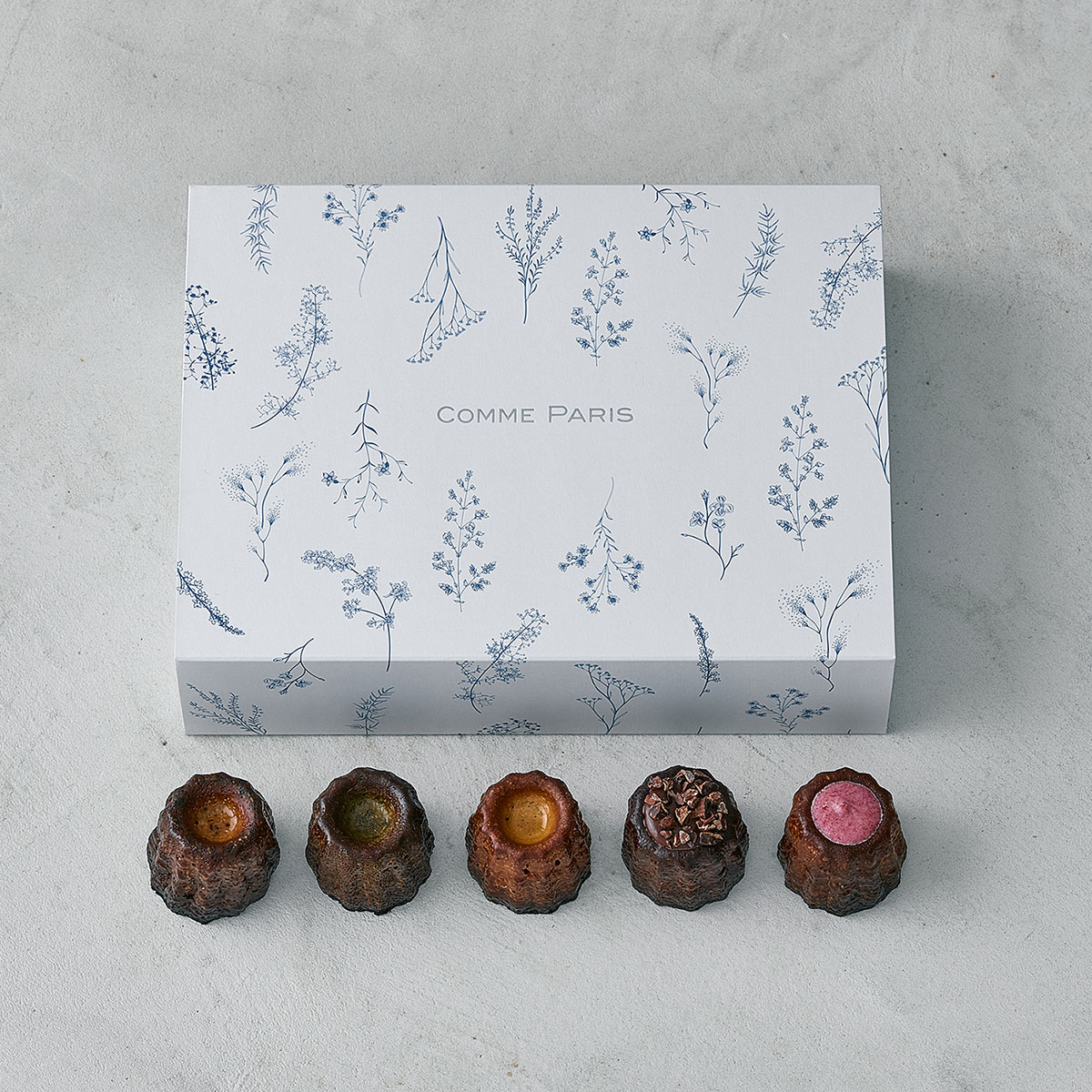 ◎ネット限定品プレーンから、人気のショコラ、いちごカヌレなどを味わえる1番人気の詰め合わせ。5種類全てのカヌレを詰め合わせた宝石箱のようなセットです。