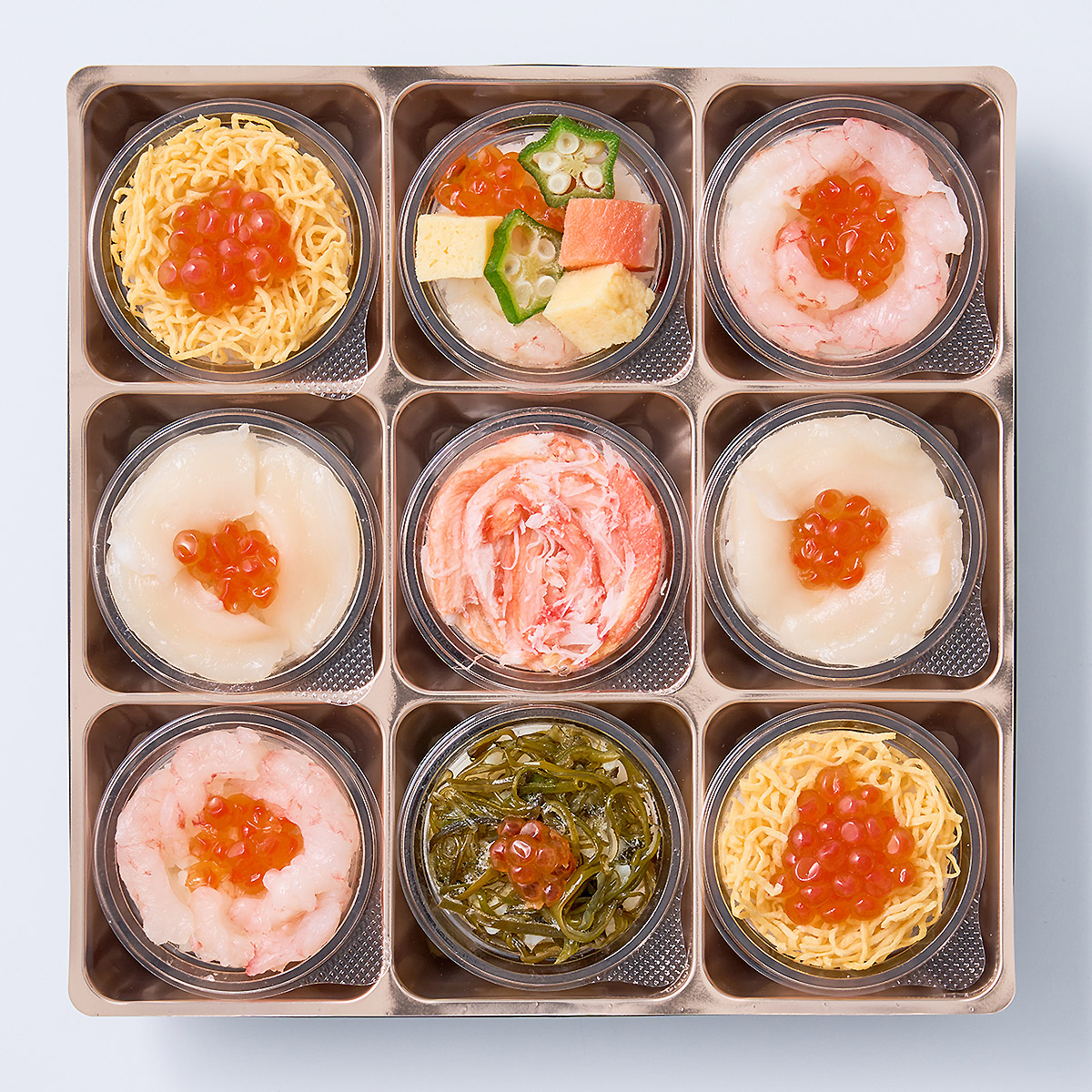 ●冷凍配送●内容:帆立いくら・甘えびいくら・卵いくら 各40g×2個、彩り・かに・めかぶいくら 各40g×1個(計9個)●箱サイズ:215×220×60mm●商品に含まれるアレルギー特定原材料8品目:卵、小麦、えび、かに●アルコール使用:なし●賞味期限:冷凍90日>>東急百貨店のお歳暮・ウィンターギフト 惣菜・調理品ほか 商品一覧>>東急百貨店のお歳暮・ウィンターギフト2025ページ※画像はイメージです。