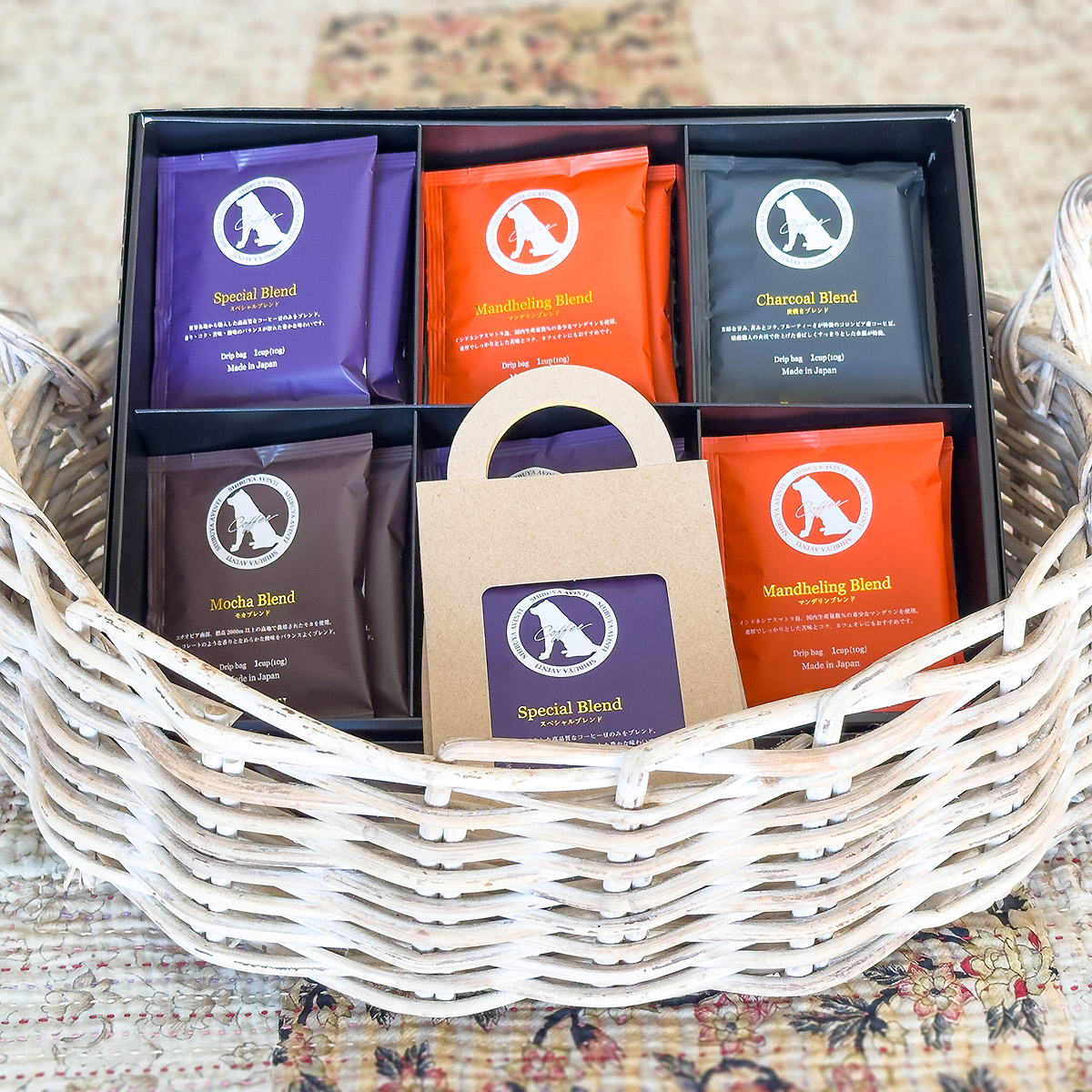 ●内容:SHIBUYA BLEND(10g)5個入りクラフトバッグ:スペシャルブレンド(10g)× 4個、モカブレンド(10g)× 4個、マンデリンブレンド10g×4個、炭焼きブレンド(10g)×3個 計15個入り