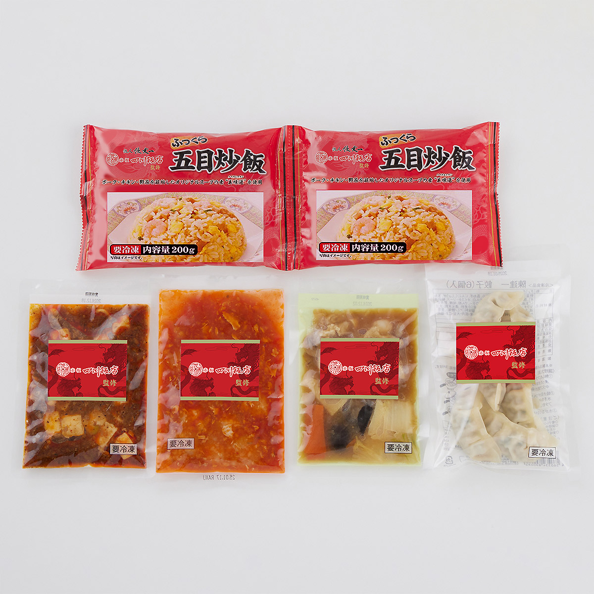 ●冷凍配送●内容:乾焼蝦仁(エビチリソース)150g、四川麻婆豆腐150g、餃子120g(6個入)、ふっくら五目炒飯(200g×2)、本格八宝菜150g×各1●箱サイズ:265×230×84mm●商品に含まれるアレルギー特定原材料8品目:卵、乳成分、小麦、えび●アルコール使用:なし●賞味期限:冷凍90日>>東急百貨店のお歳暮・ウィンターギフト 惣菜・調理品ほか 商品一覧>>東急百貨店のお歳暮・ウィンターギフト2025ページ※画像はイメージです。