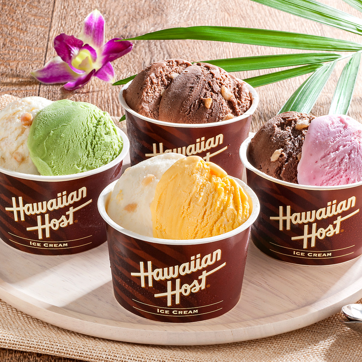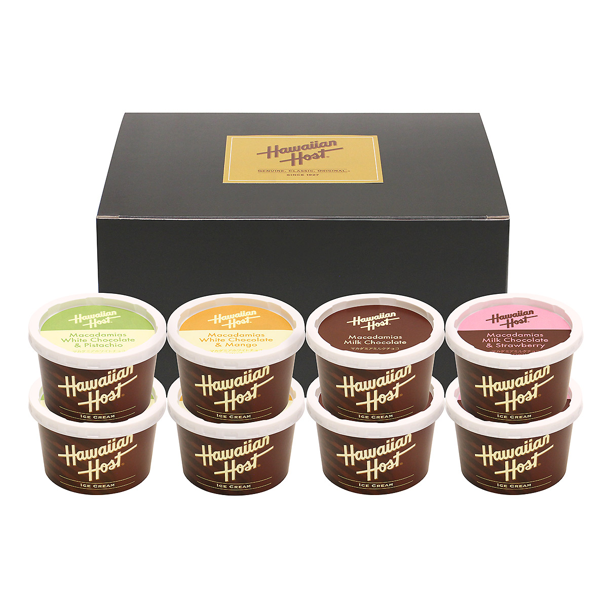 ◎ネット限定品「ハワイアンホースト」の代名詞であるマカダミアナッツのクラッシュを練りこんだミルクチョコアイスと、ミルクとホワイト2種のマカダミアチョコアイスに、相性ぴったりの3つのフレーバーを組み合わせ、見た目も味も楽しいアイスに仕上げました。