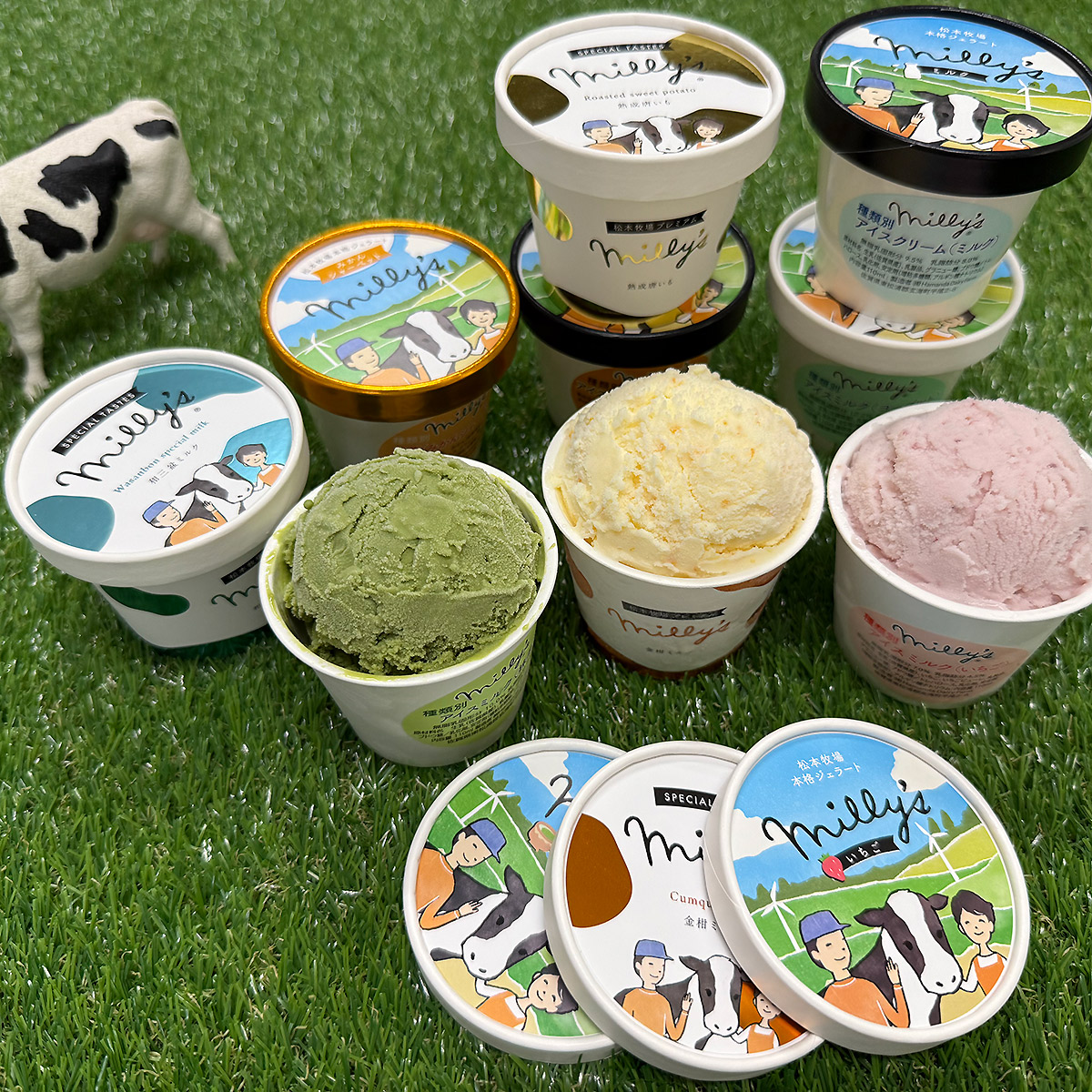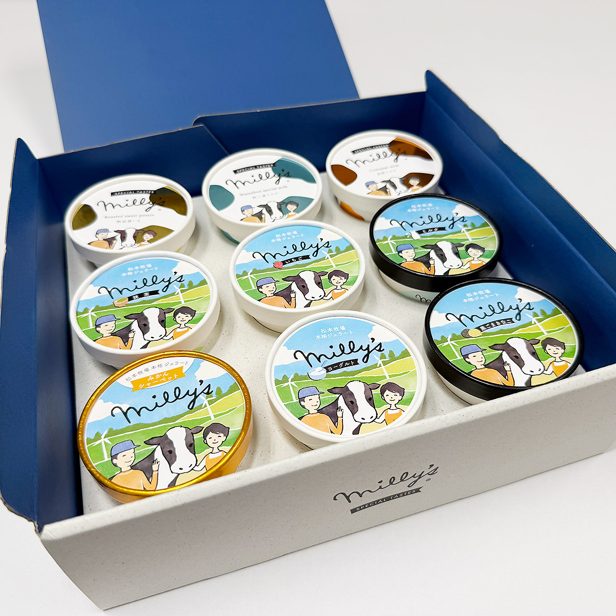 ◎ネット限定品牧場内にある工房のイタリア製マシンで、牧場搾りたてミルクと地元農産物で作った本格ジェラート6種とプレミアムジェラート3種の9個セットです。濃厚でコクがあるのにさっぱりした口あたりを楽しんでください。