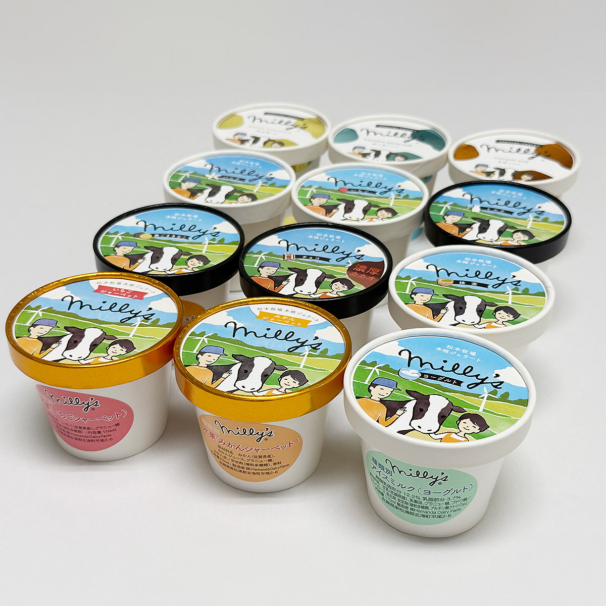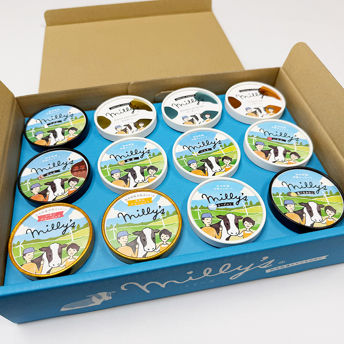 ◎ネット限定品牧場内にある工房のイタリア製マシンで、牧場搾りたてミルクと地元農産物で作った本格ジェラート9種とプレミアムジェラート3種の12個セットです。濃厚でコクがあるのにさっぱりした口あたりを楽しんでください。
