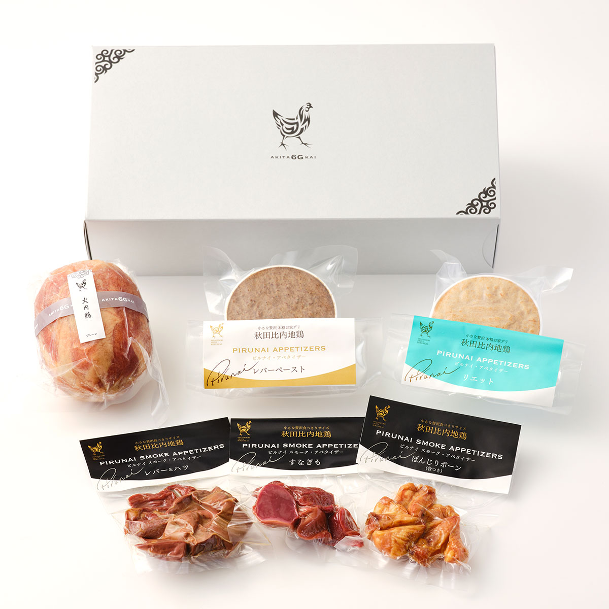 ◎ネット限定品独自の飼育方法で質を高めた比内地鶏≪火内鶏≫を100%使用し、ドイツ食肉加工マイスターが仕上げるブロックハム。希少部位のハツも使用し力強い味に仕上げたレバーペースト。低温でじっくり火を通し地鶏の旨味を凝縮させたペーストのリエット。スモークは、濃厚な味わいと旨味の「レバー&ハツ」、あえて骨付きで仕上げた「ぼんじりボーン」、心地よい歯ごたえの「すなぎも」、希少部位3種。特別な食卓を彩る比内地鶏の商品を集めたおススメのセットです。