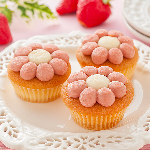 ◎ネット限定品あまおう苺とホワイトチョコの2色のチョコクリームを、お花の形にトッピングした可愛らしいカップケーキ。東京の老舗菓子店≪六本木アマンド≫監修。