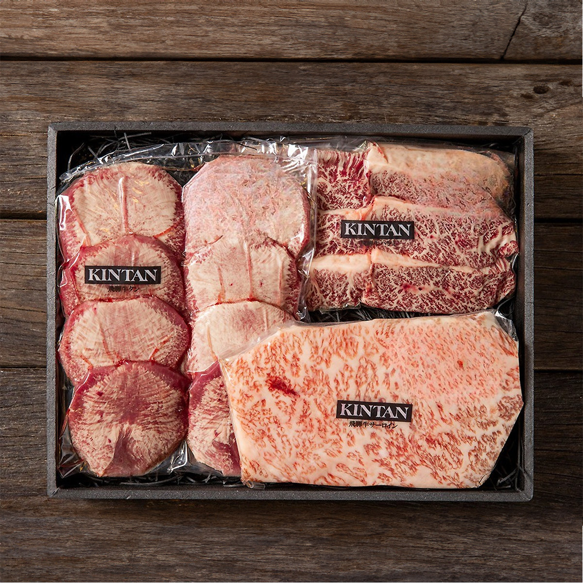 希少な飛騨牛を味わう、ボリュームたっぷり3~4人前の焼肉セットです。岐阜県の山々から湧き出る美味しい水と澄んだ空気、豊かな自然のなかで、のびのびと育てられた飛騨の牛は肉質がきめ細やかで柔らかく、とろけるような旨味と芳醇な香り、奥深い味わいをお楽しみいただけます。希少な飛騨の『牛タン』と、飛騨の『牛ハラミ』、飛騨牛『サーロイン』の3種類入り。冷凍しない生の状態で、美味しさをそのままお届けします。セットには、ごはんにもお肉にもよく合う『KINTAN焼肉のタレ』と焼肉のおともにピッタリな『特製キムチ』、『韓国海苔』、締めの『冷麺セット』も含まれるので、届いた商品だけで、お店と変わらない本格的な味わいを自宅で楽しめます。希少なブランド和牛の飛騨牛焼肉セットは、大切な方へのプレゼントやグルメな方への贈り物などワンランク上のプレゼントをしたい時にピッタリです。