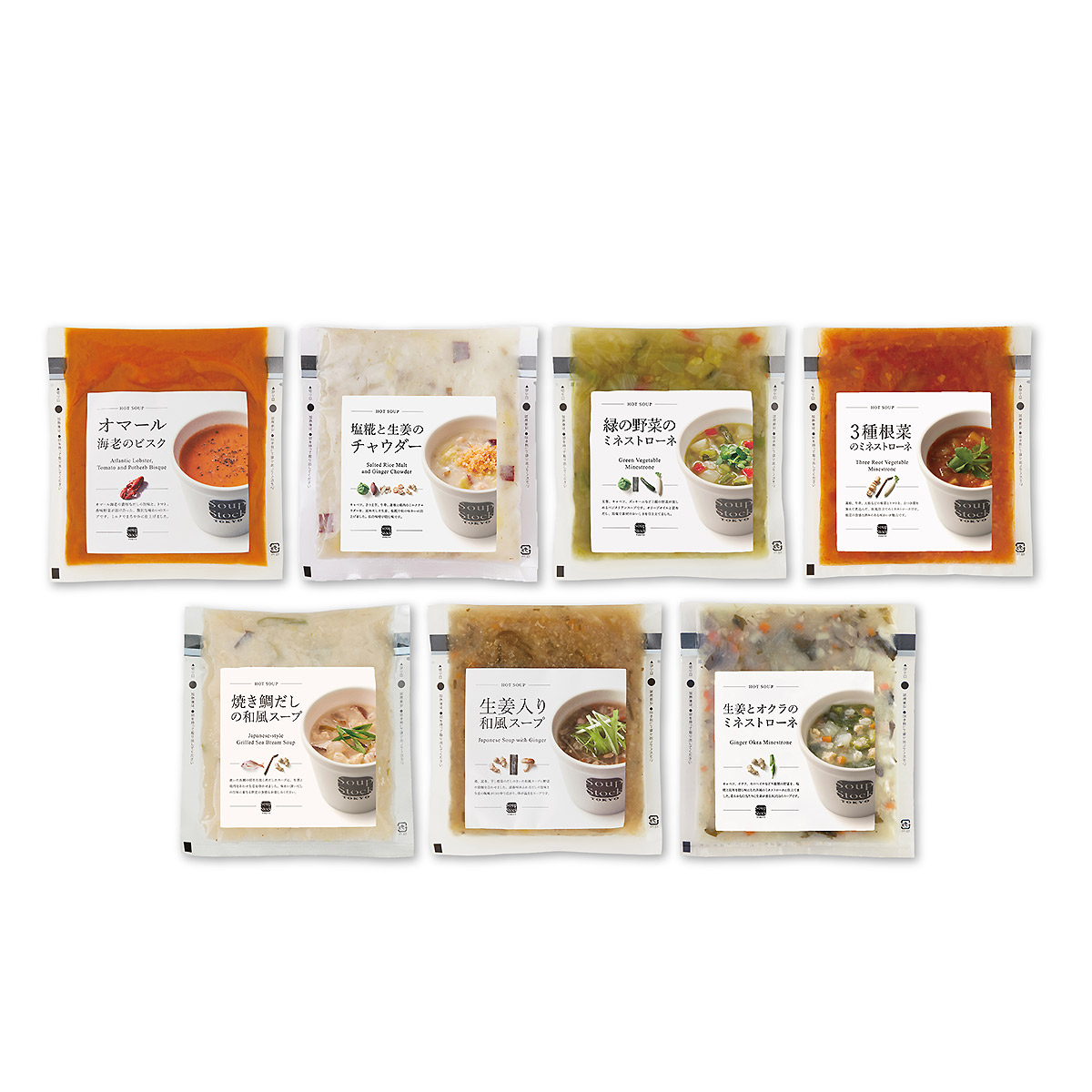 ◎ネット限定品だしの旨味で仕上げたスープを詰め合わせました。オマール海老の濃厚なだしの旨味の1番人気「オマール海老のビスク」、焼いた真鯛の頭を力強く煮だした「焼き鯛だしの和風スープ」、かつお節、昆布だしを加えて煮込んだ「3種根菜のミネストローネ」など「だしの旨味」を存分にお楽しみいただけます。電子レンジで簡単にお召し上がりいただけます。