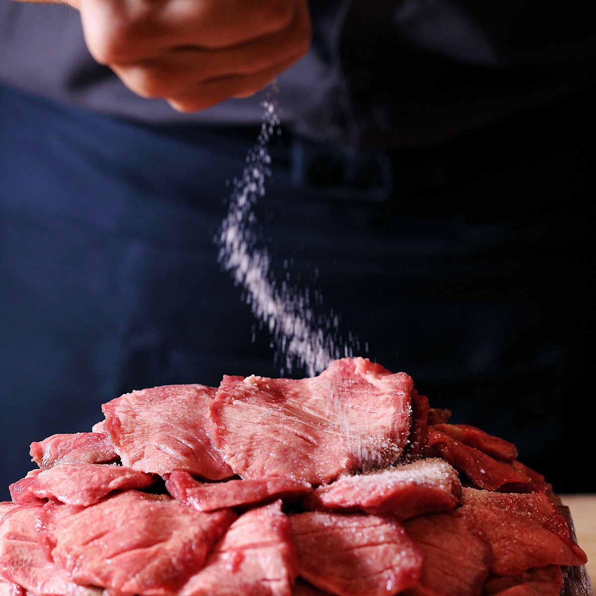 ◎ネット限定品≪利久≫の牛たん焼は、職人が厳選した柔らかな部位のみを使用し、丁寧に手仕込み。独自の切り込みで味がなじみやすく、厚みがあってもサクッと噛み切れる食感に仕上げます。味の決め手は、限られた職人だけが知る秘伝の塩。1枚1枚手振りで味付けし、季節や地域に応じた絶妙な塩加減に調整。じっくり熟成させることで、牛たん本来の旨みを最大限に引き出した至極の一品です。