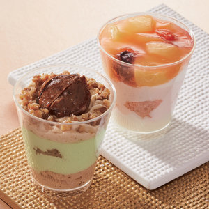 <東急百貨店限定>桃や栗の風味が絶妙な、老舗フルーツ専門店のヴェリーヌ。国産桃のシラップ漬け、ベリーにピーチラズベリームース、ホワイトチョコソースを重ねた「ピーチベリー」と渋皮栗と和栗&イタリア栗クリームに、相性が良いピスタチオムースを重ねた「マロン」の2種が楽しめます。