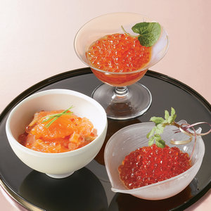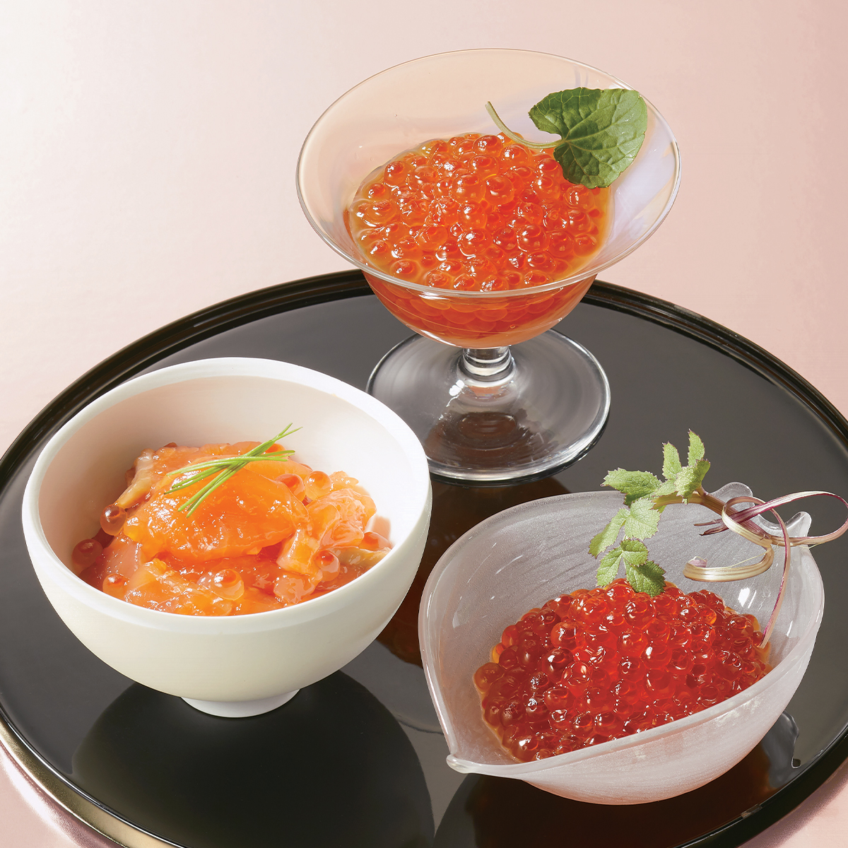 <東急百貨店限定>鮭の魚醤や有機白醤油で仕上げたいくらと、秋鮭のルイベ漬をセットに。北海道の沿岸で朝、水揚げされたいくらを、鮮度の良いうちに鮭でつくった魚醤や≪七福醸造≫の有機白醤油を使ったたれに漬け込みました。天然秋鮭といくらの旨みを凝縮したルイベ漬とともにお届けします。