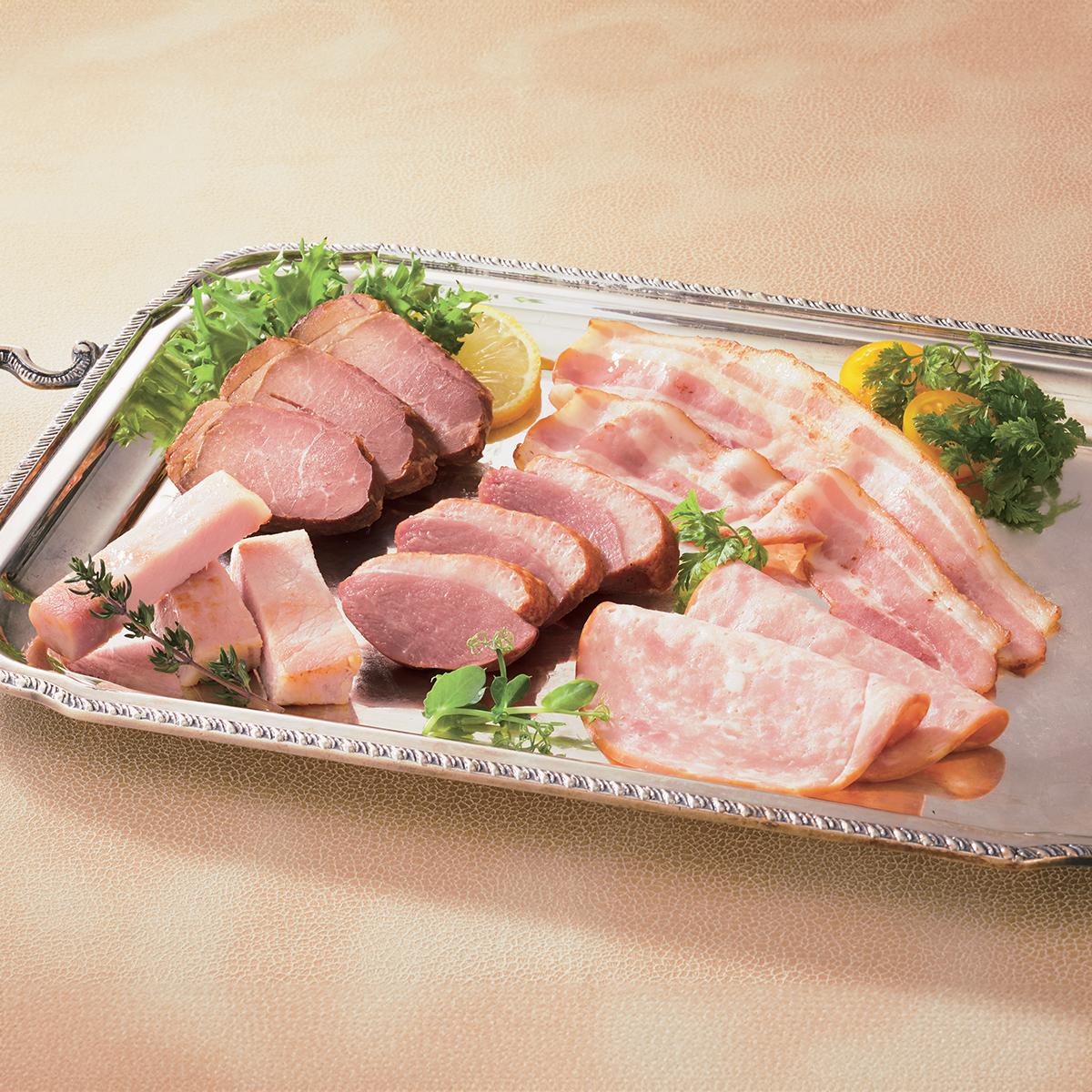 鹿児島より、炭焼き製法で仕上げた焼豚とハム、ソーセージを詰め合わせました。