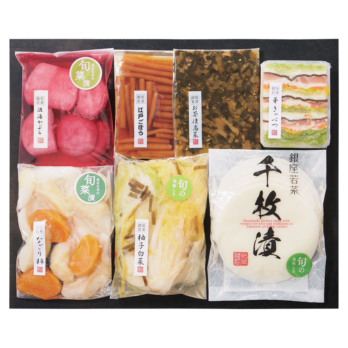 ●冷蔵配送●内容:柚子白菜250g、千枚漬120g、なごり柿180g、温海かぶら130g、華きゃべつ115g、江戸ごぼう60g、お茶漬高菜90g●商品に含まれるアレルギー特定原材料8品目:小麦●賞味期限:冷蔵7日※11月20日(木)頃から承り順にお届けします。>>東急百貨店のお歳暮・ウィンターギフト 米・漬物・梅干 商品一覧>>東急百貨店のお歳暮・ウィンターギフト 銀座若菜 商品一覧>>東急百貨店のお歳暮・ウィンターギフト2025ページ※画像はイメージです。
