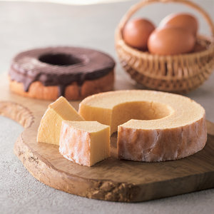 日本で初めて有機認証を取得したバウムクーヘン。どこか懐かしいようなやさしい甘さ。合成化学肥料や農薬を使わず、堆肥などを活用した循環型農業で自然環境の保全に努める≪黒富士農場≫。平飼い放牧で飼育し、有機栽培の飼料で育てた鶏の有機JAS認証取得の卵を使った「有機ばうむ」です。バターや生クリームも全て有機素材の使用を徹底。しっとりと優しい甘さで奥深い卵の風味が楽しめます。