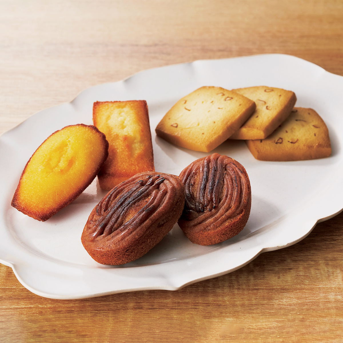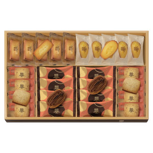 1969年、デザートが食べられる喫茶店として兵庫・芦屋に誕生。以来、幸せ・喜び・驚きを伝えるために、代表商品のフィナンシェをはじめ、焼菓子やケーキを生みだしています。香ばしいアーモンドと芳醇なバターの香り、中はしっとり仕上げた「フィナンシェ」や秋冬限定の「焼き栗モンブラン」など洗練の味わいを詰め合わせたボックスです。