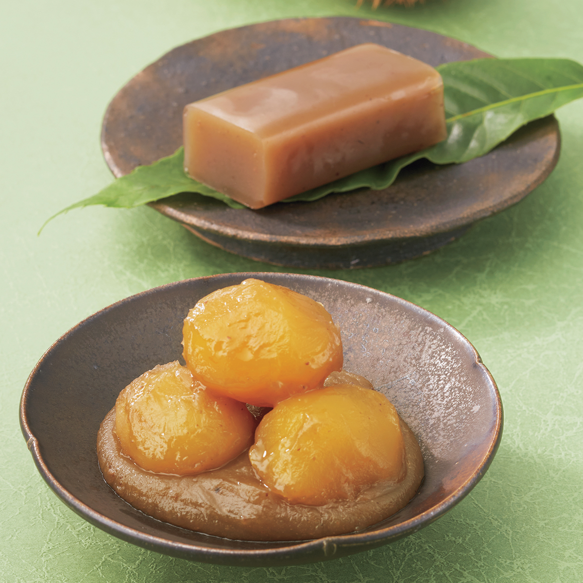 小布施を代表する伝統的な栗菓子「栗ようかん」と「栗かの子」を、お手軽な食べきりサイズでお届けします。