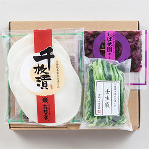 京漬物の伝統を守り、季節を彩る名店。創業以来、一世紀にわたって京漬物ひとすじに精進する名店の美味。古都の風物詩「千枚漬」や、丹念に仕上げた自慢の漬物をバラエティー豊かに詰め合わせました。