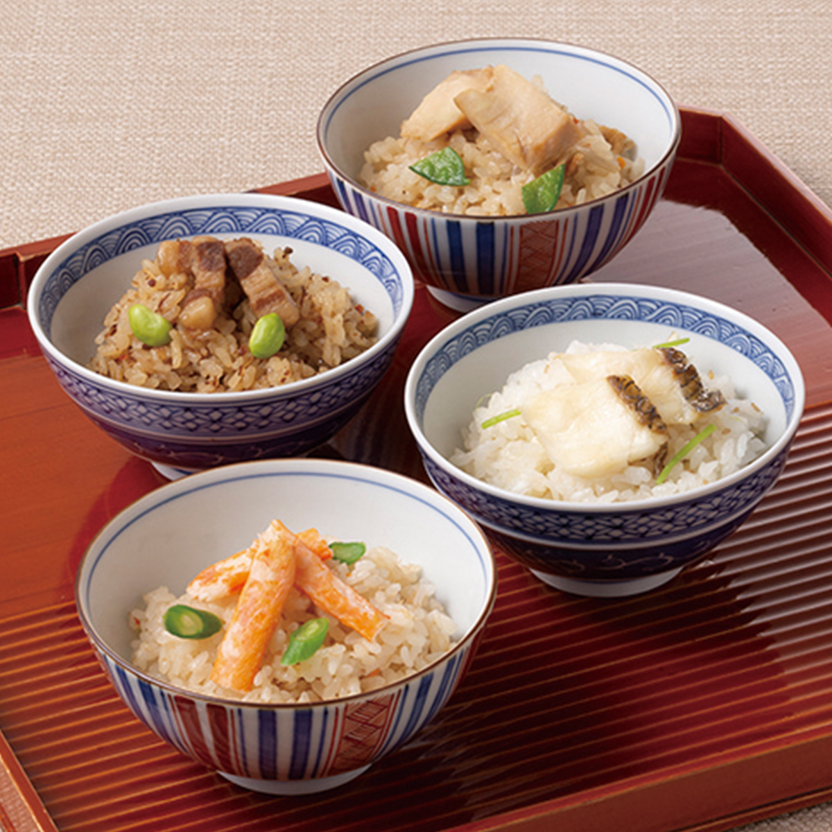 ●内容:かにめし・真鯛めし・豚角煮めし・とりめし 各120g×2