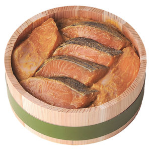 心意気が受け継がれ、語り継がれる≪加島屋≫の味。海の彼方まで足を運び、素材の良し悪しを目で確かめる。人の手と時間をかけて、昔ながらのおいしさを生む。安政2年の創業以来170年。老舗の味を支える源は、当たり前のことを貫き通す心意気です。脂がのったキングサーモンを、国産の袖振大豆を使った越後味噌に漬け込みました。キングサーモンの旨みに味噌の風味があいまって、絶妙の味わいを醸します。