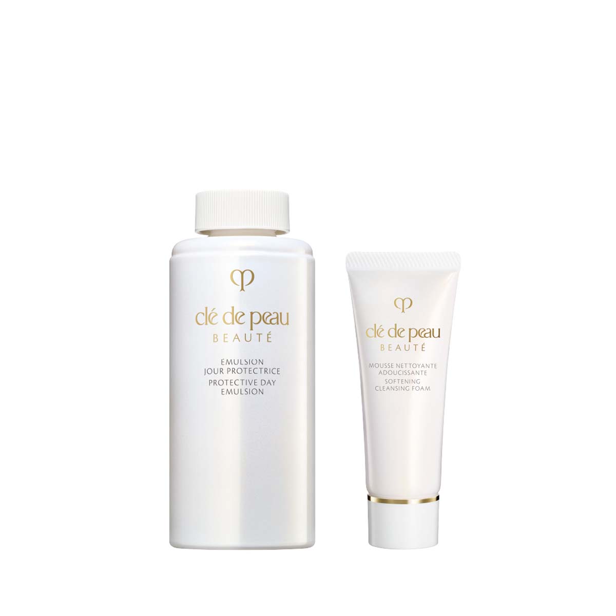 輝き続ける肌のために。朝の肌に必要なうるおいが長時間続く日中用の乳液と、しっとりとした肌に洗い上げる洗顔の特製サイズのキット【セット内容】・クレ・ド・ポー ボーテ エマルションプロテクトゥリス(ジュール) <乳液(日中用)> SPF25・PA+++ 125mL (レフィル)・クレ・ド・ポー ボーテ ムースネトワイアントA n <洗顔フォーム> (モイスト) 特製サイズ 20g>>クレ・ド・ポー ボーテ 商品一覧