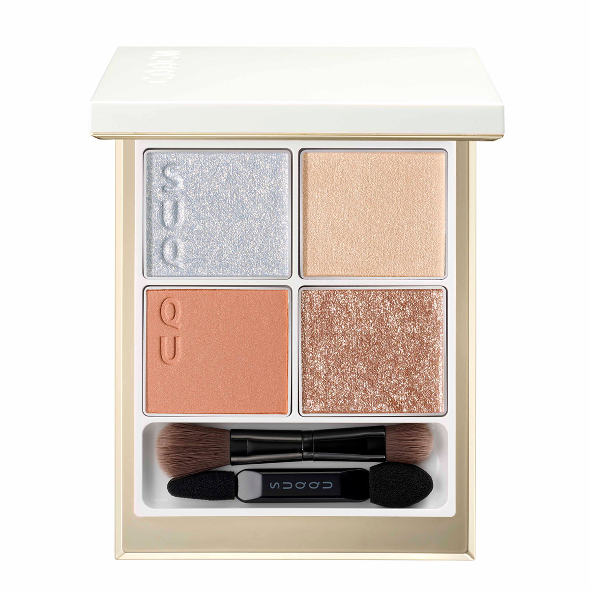 ◎渋谷スクランブルスクエア +Q(プラスク)取扱商品光に包まれる温かな多幸感を表現した2種のメイクアップ キット。SUQQUを象徴する人気のアイシャドウ パレットと、みずみずしく艶やかな質感のリクイドチークのセットです。ふんわりとしたマット質感のベースの上に、パールの煌めきが目元に降り注ぐ「シグニチャー カラー アイズ」と、ほのかに面で光るパールを忍ばせた「デューイー リクイド ブラッシュ」でホリデーシーズンならではの多幸感あふれる表情を演出します。