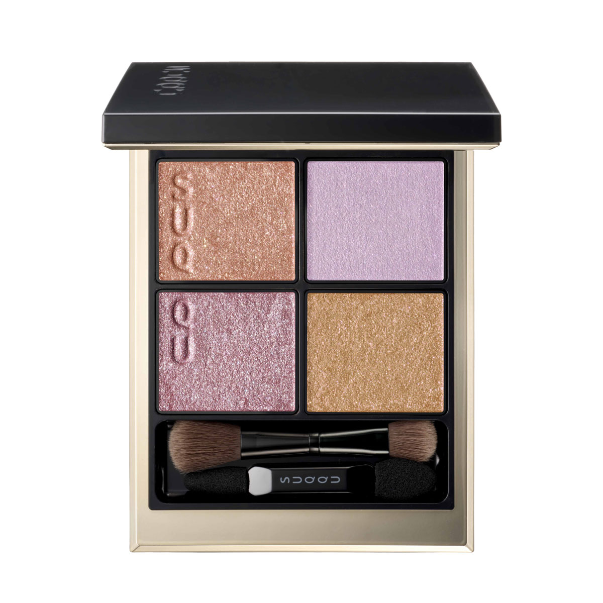 ◎渋谷スクランブルスクエア +Q(プラスク)取扱商品桜、梅、桃、すももの花が咲き誇る、百花繚乱の世界を閉じ込めたパレット。春という季節に似合うポジティブな多幸感を、多色の大粒パールやメタリックな質感で描いた4色です。ひとつひとつ質感とパール感が異なるため、使い方次第で様々な表情を楽しめます。