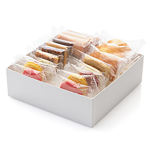 ●内容:フィナンシェ ナチュール×3個、サブレ ノワゼット×2個、フロランタン(ショコラ・ナチュール×各1個)、マドレーヌ シトロン ベルガモット×3個、クッキー(ショコラ・ヴァニーユ×各1個)、マカロン ラスク×8個 (計20個入)●箱サイズ:20.0×20.0×6.5cm●商品に含まれるアレルギー特定原材料8品目:卵、乳成分、小麦●アルコール使用:なし●賞味期限:製造日から60日>>パティスリー・サダハル・アオキ・パリ 商品一覧
