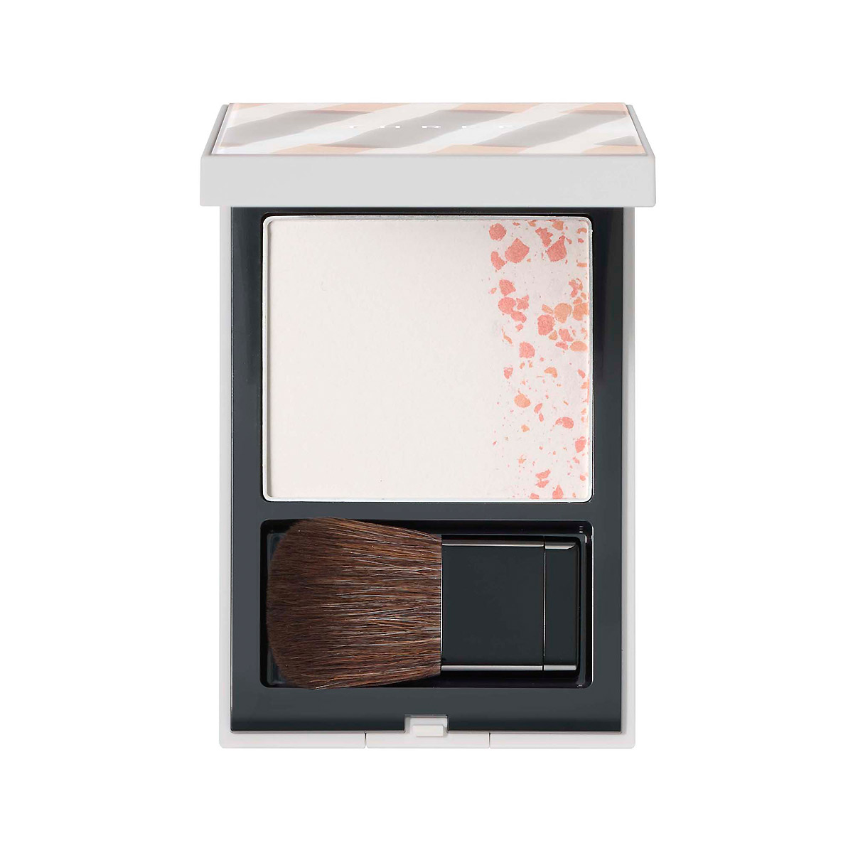 ・ホワイトパウダーと血色カラーをバランスよくブレンドするために、円を描くようにブラシにパウダーを含ませます。