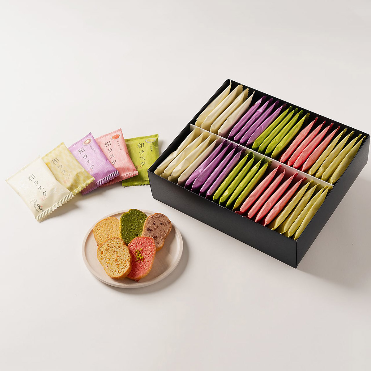 ●内容:和ラスク、和ラスク あんバター、和ラスク 宇治抹茶、和ラスク あまおう苺、和ラスク 柚子胡椒 各8枚●箱サイズ:25×28.3×7.6cm●商品に含まれるアレルギー特定原材料8品目:乳成分、小麦●アルコール使用:あり●賞味期限:製造日より90日和楽紅屋 商品一覧