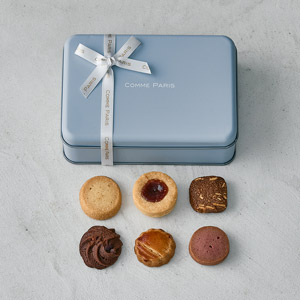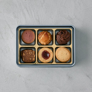 ◎渋谷ヒカリエ ShinQs(シンクス)取扱商品6種のクッキーを詰め合わせた小さなクッキー缶。バターの香り豊かなガレットナンテや香ばしいナッツショコラ、上品なローズショコラなど、贅沢な味わいをお楽しみいただけます。