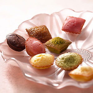 ●内容:プティ・ガトー・アソルティ(フィナンシェ、マドレーヌ、キャラメル、ピスターシュ、フランボワーズ、ミルクチョコ、抹茶、フレーズ)各3個