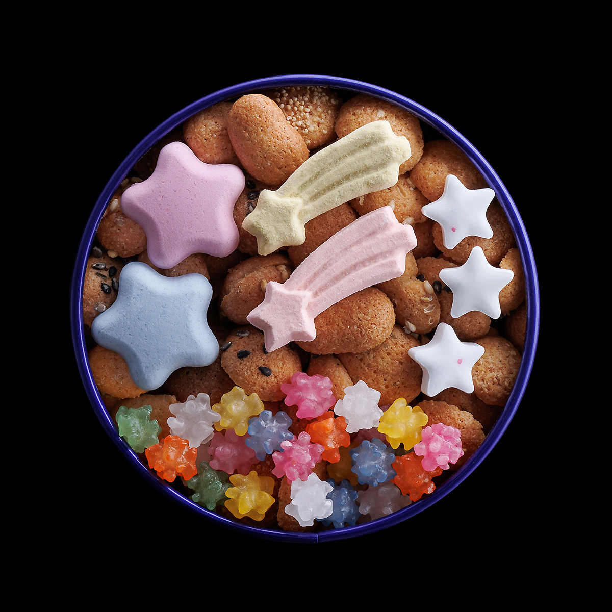 ◎渋谷ヒカリエ ShinQs(シンクス)取扱商品江戸菓子職人が描いた、冬の夜空にきらめく流れ星をイメージした限定缶。金平糖や和三盆、打ち物などの干菓子が織りなす幻想的な彩りは、まるで星々が舞う夜空のよう。特別なお箱に詰めて、大切な人へ冬のきらめきを届けるクリスマスの贈り物として喜ばれます。